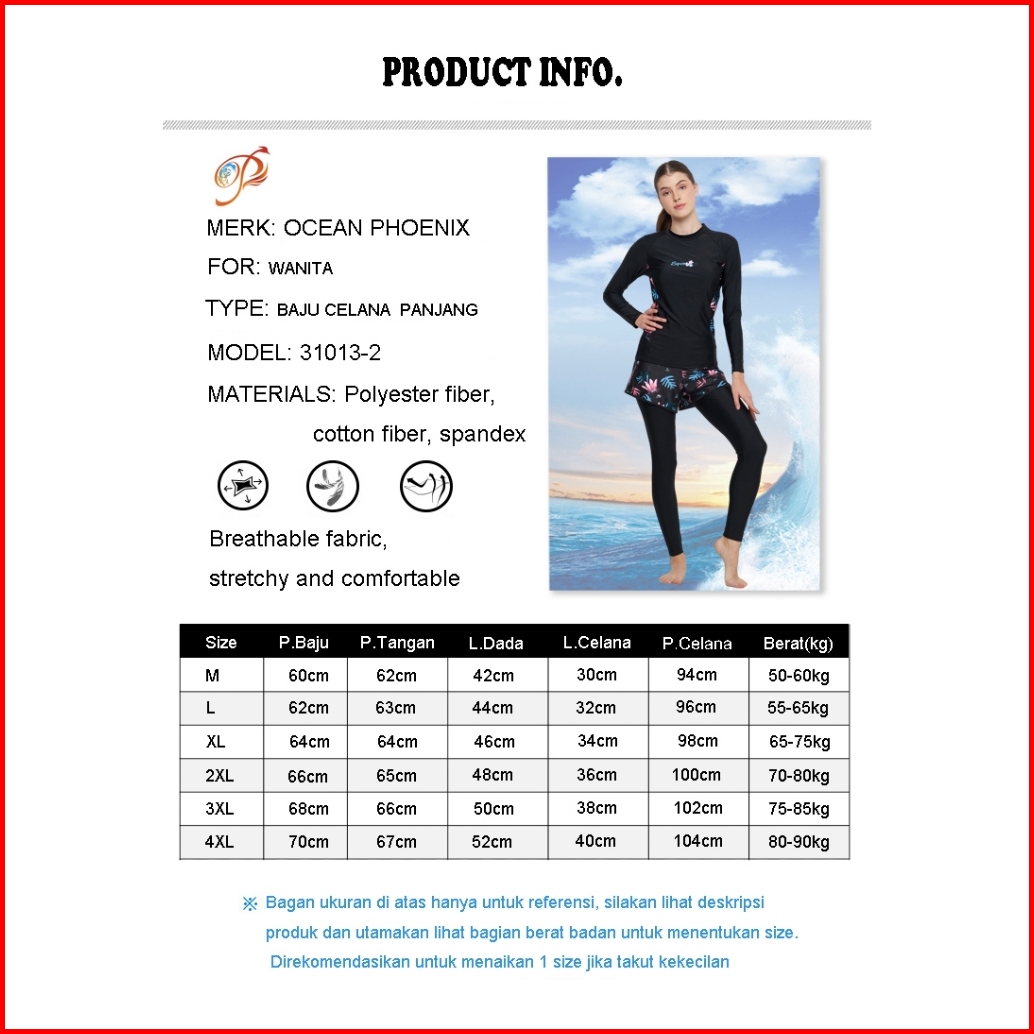 31013-2 Baju Renang Wanita Baju Renang Dewasa Baju Renang Muslim Dua Piece Fashion Dewasa Baju Renang Lengan Panjang Pak