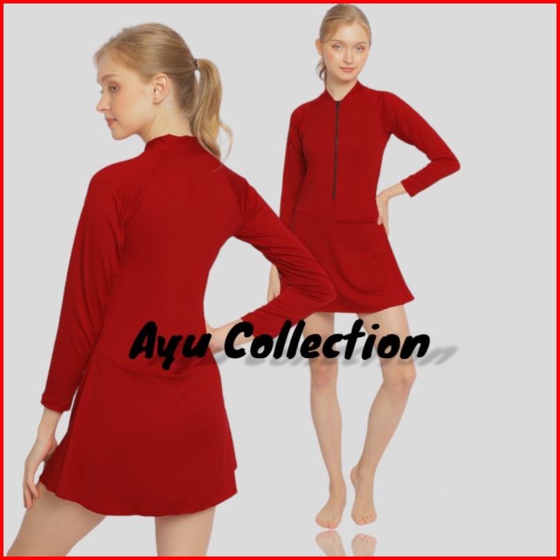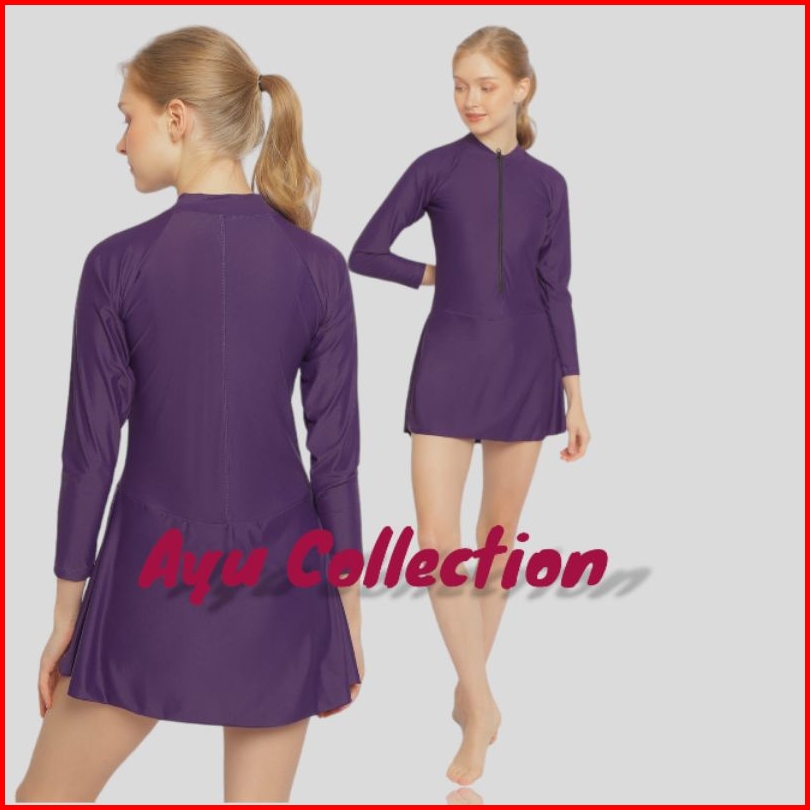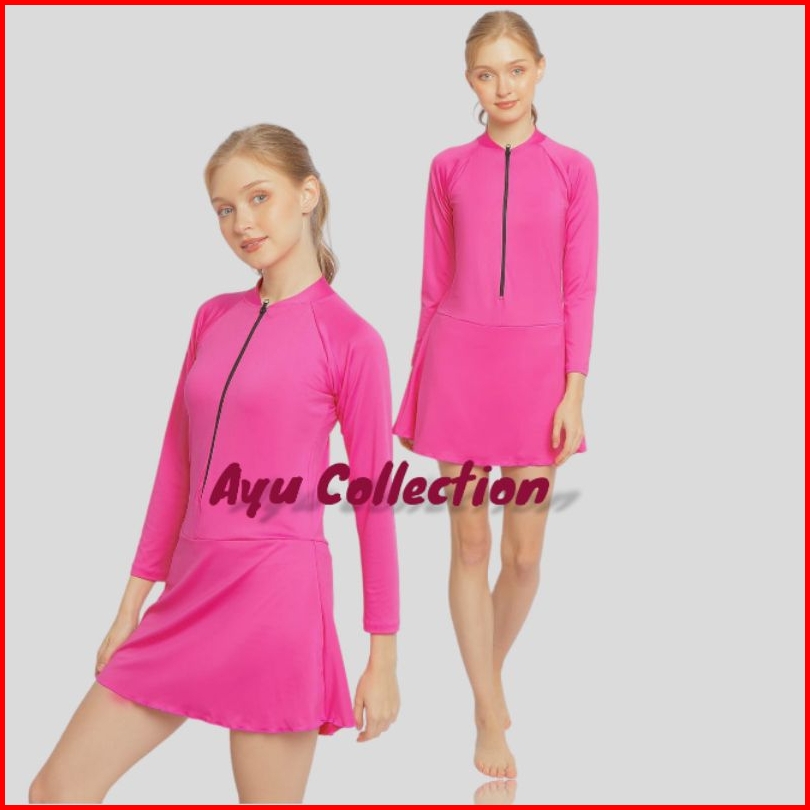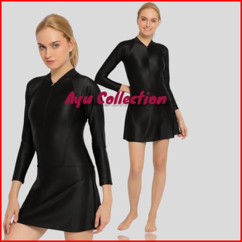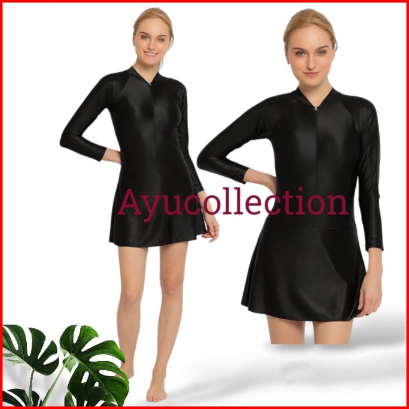 Baju Renang Wanita Dewasa.diving Rok Tangan Panjang Polos