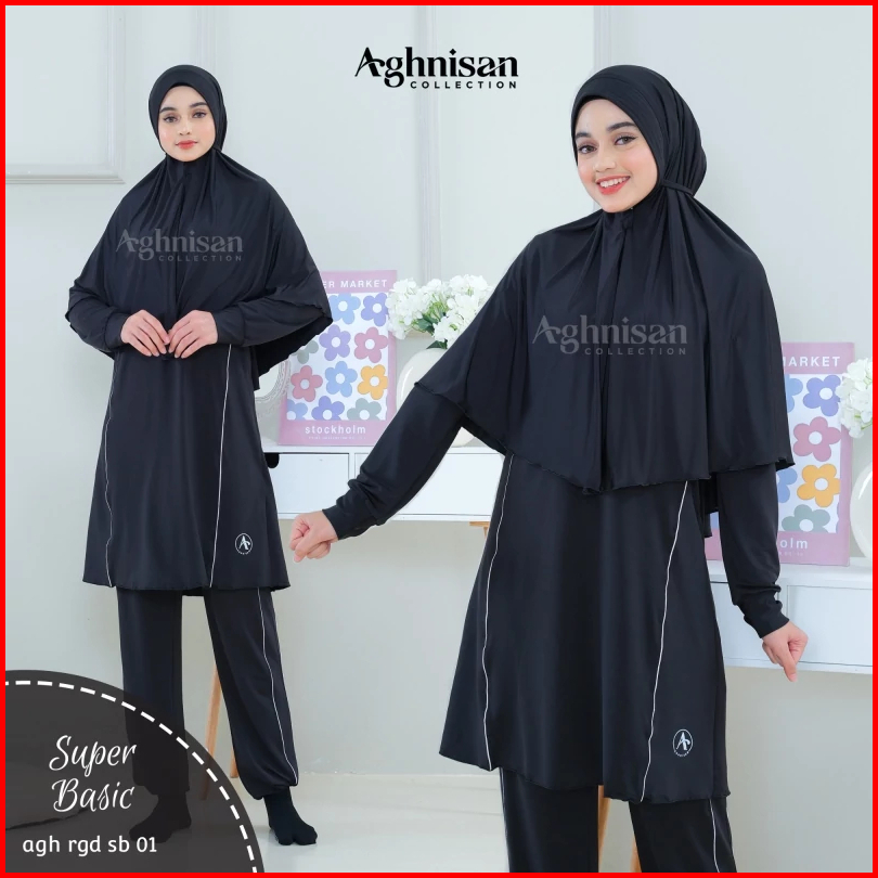 Aghnisan Baju Renang Wanita Muslimah Syari Super Basic - Bahan Spandex Nylon Sutra Anti Singkap Swimwear