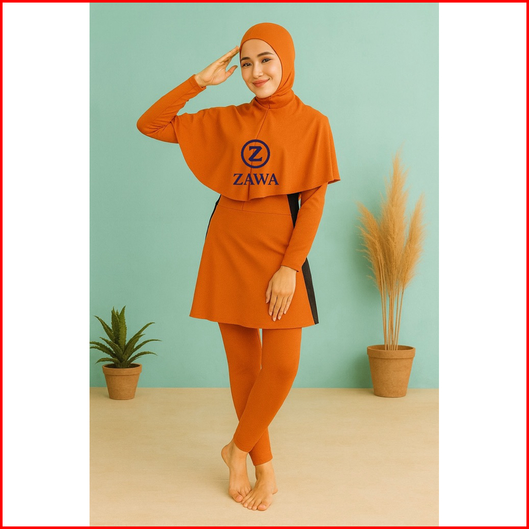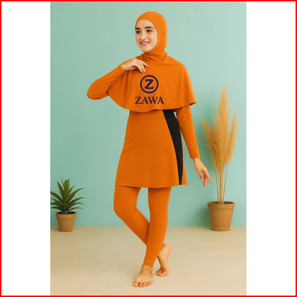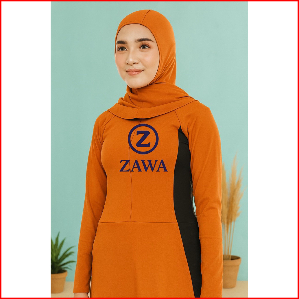 Zawa Aldila Muslimah Swimwear Orange - Baju Renang Muslimah Hijab Syari Sporty Remaja Perempuan