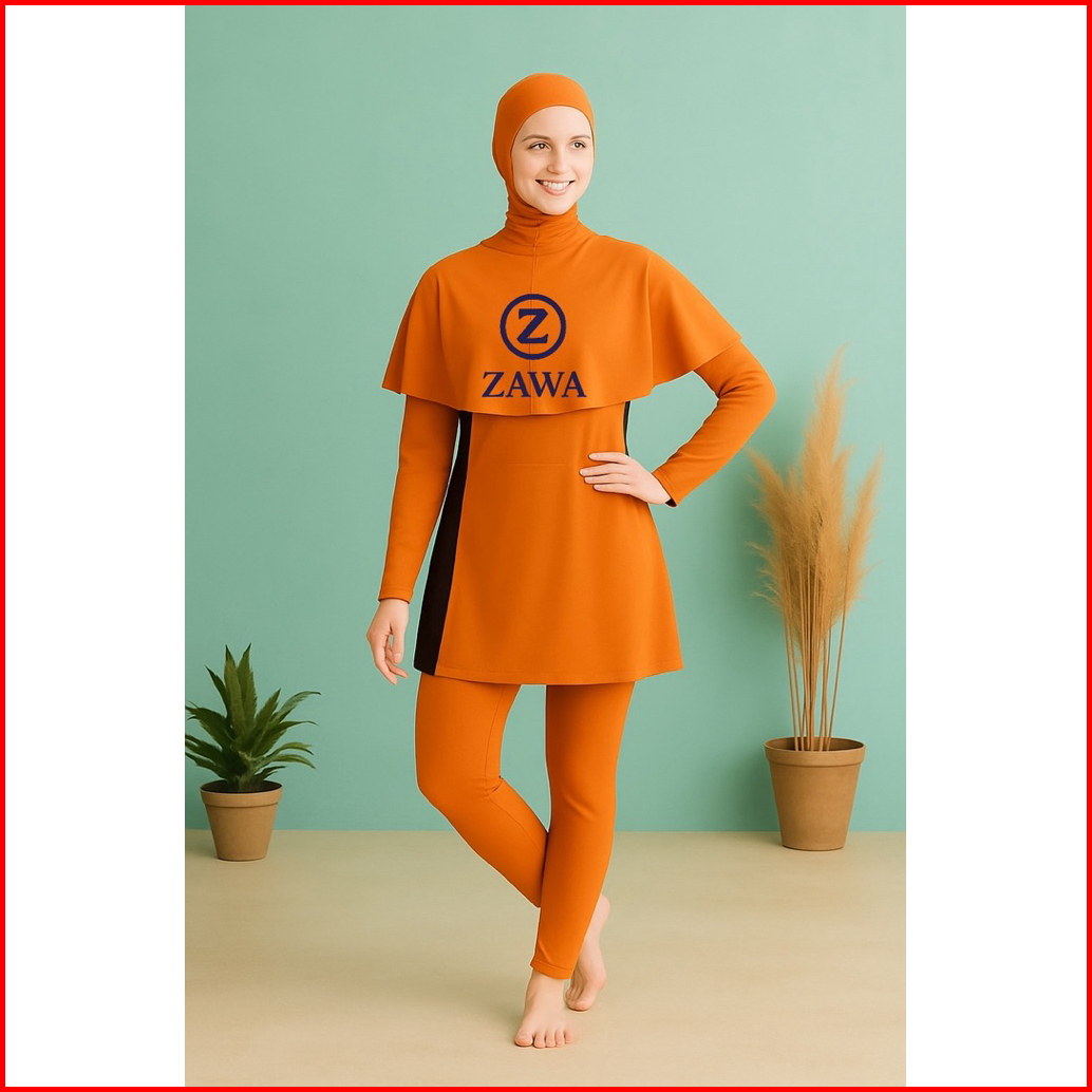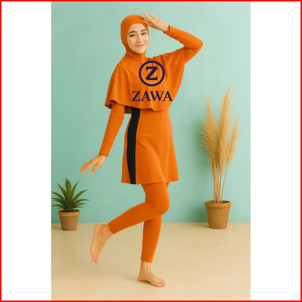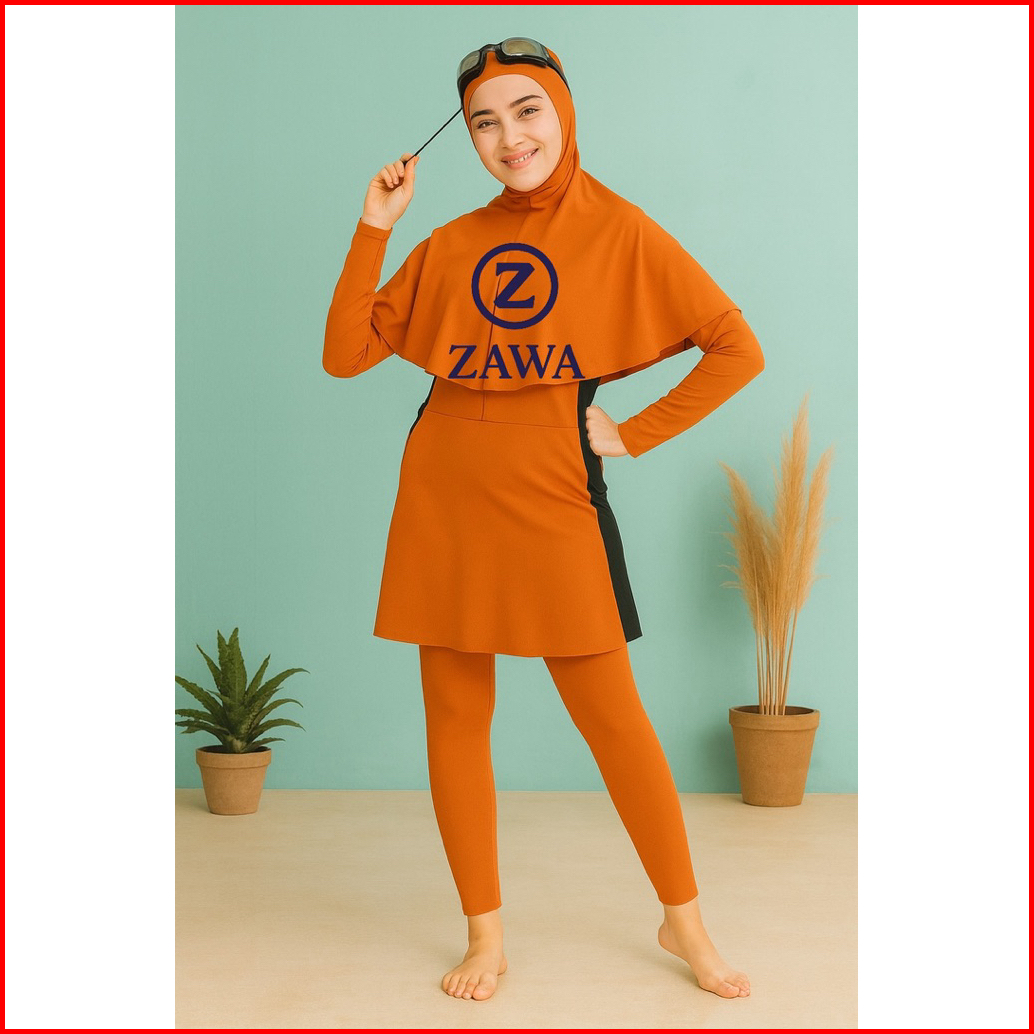Zawa Aldila Muslimah Swimwear Orange - Baju Renang Muslimah Hijab Syari Sporty Remaja Perempuan