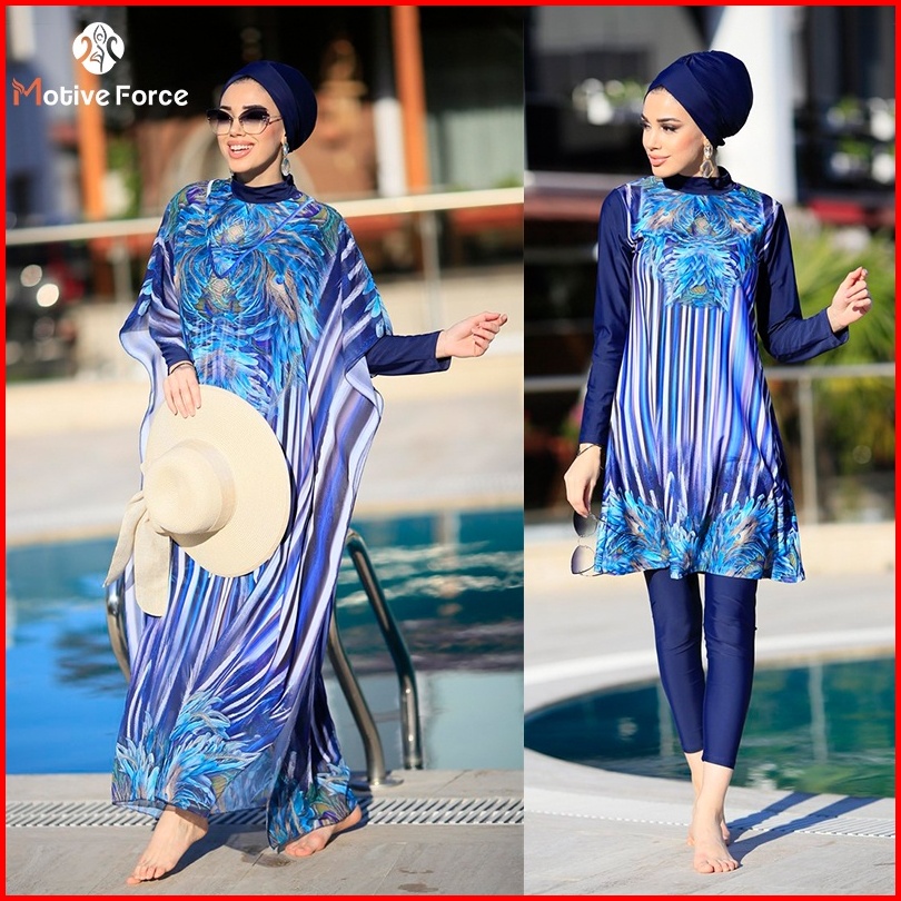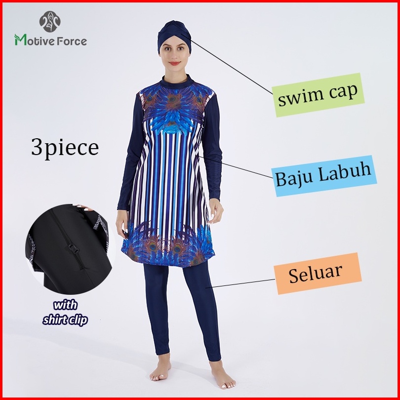 Motive Force Baju Renang Muslimah Wanita Dewasa 4 Buah Set Bulu Merak Swimwear Collection