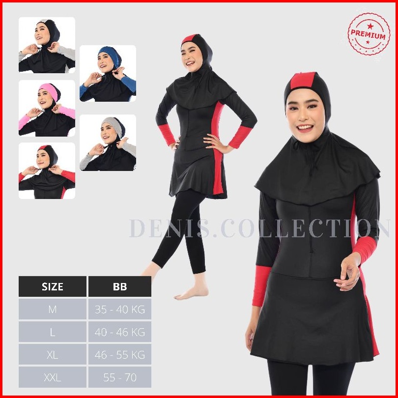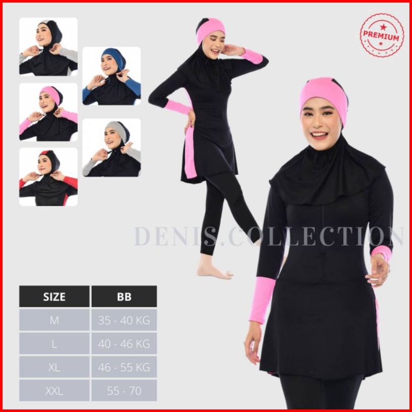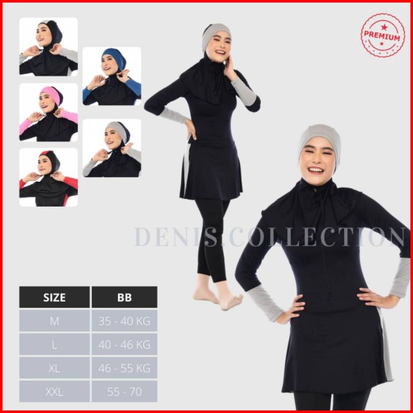 Denis Swimwear As01 - Baju Renang Muslimah Dewasa Wanita Muslim Perempuan Remaja Swimwear Remaja Dewasa Muslim Polos