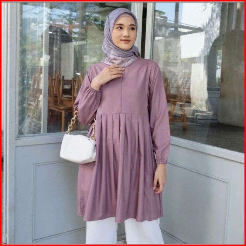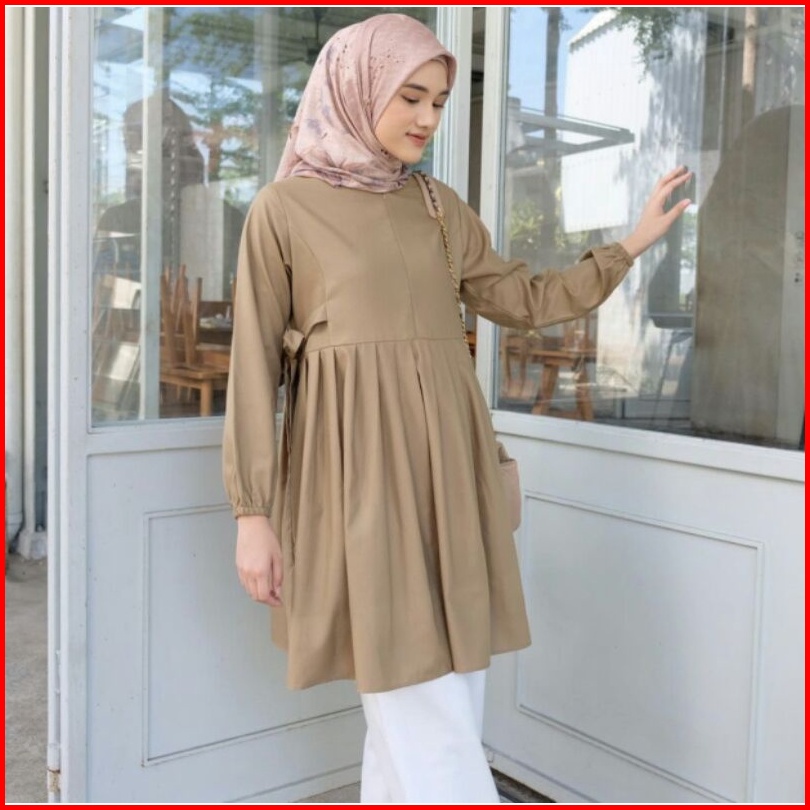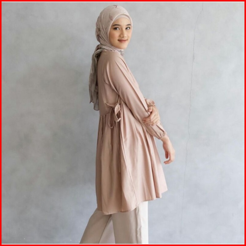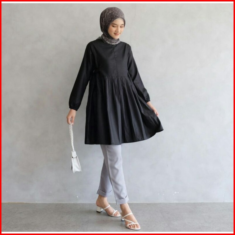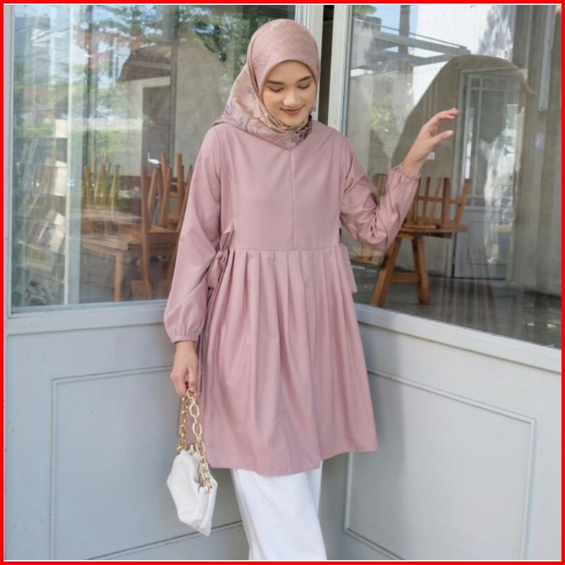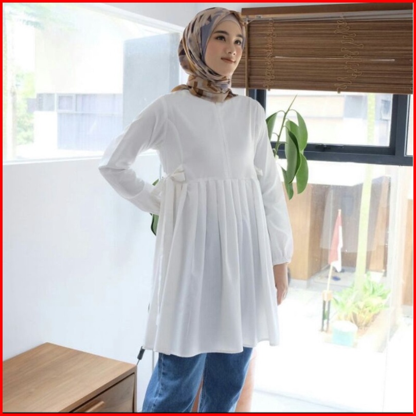 Anima Tunik - Atasan Tunik Basic Ala Korean Style Dengan Pita Kanan Kiri Dibagian Pinggang Look So Cute Top Wanita Terba