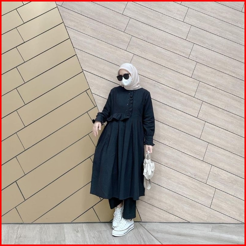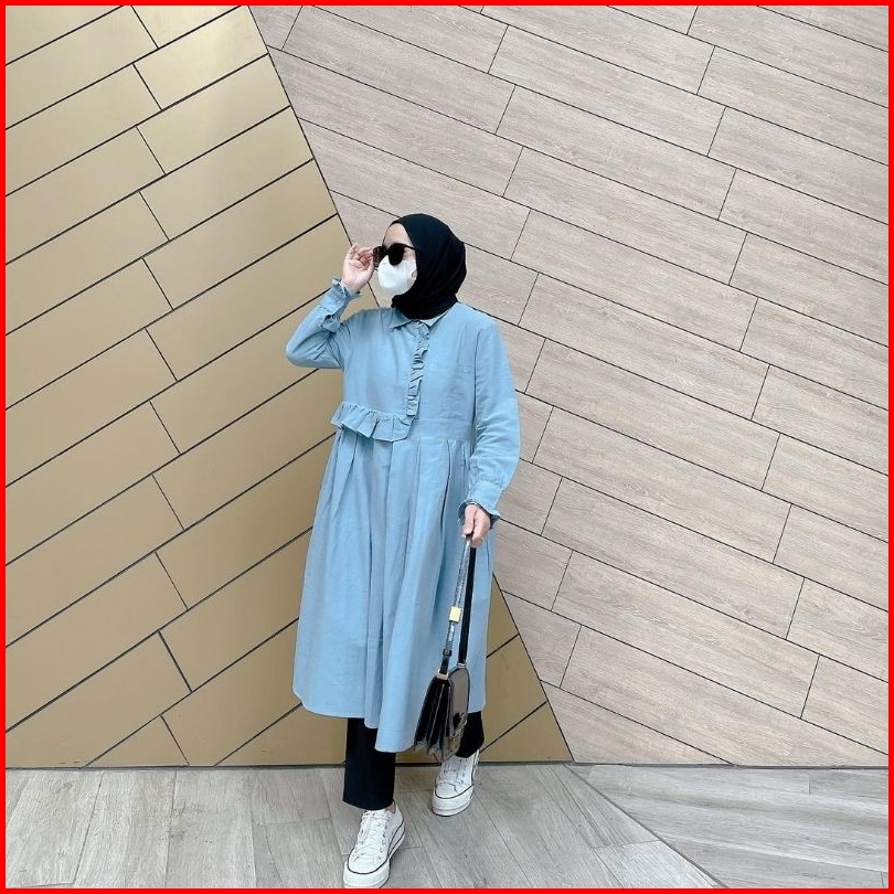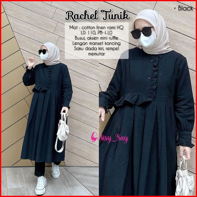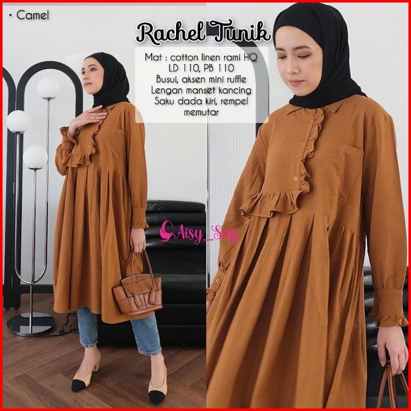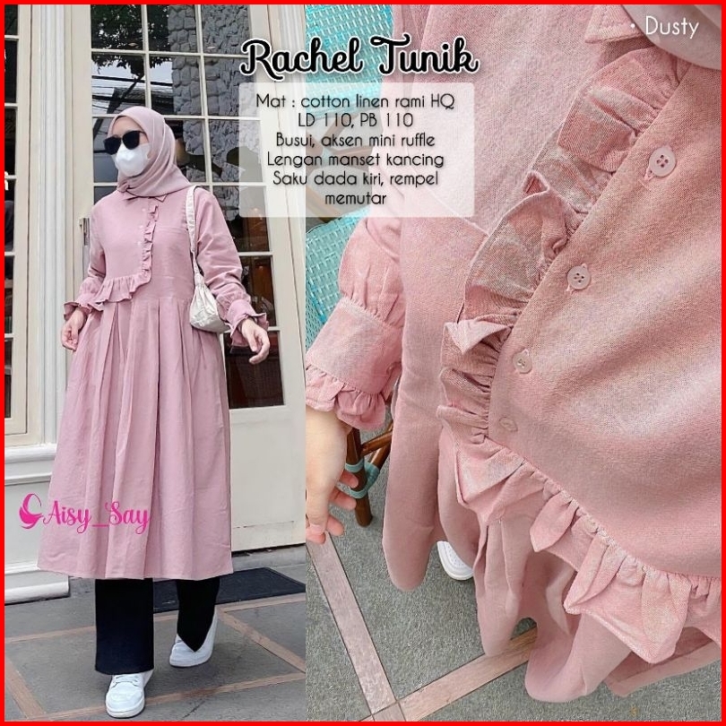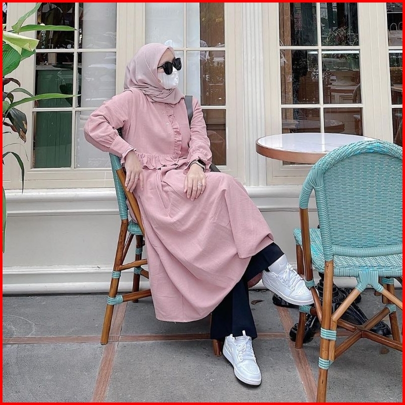 Rachel Long Tunik Korean Style Bahan Linen Premium By Aisysay-tunik Wanita Kekinian By Aisy Say-tunik Kancing Depan-tuni