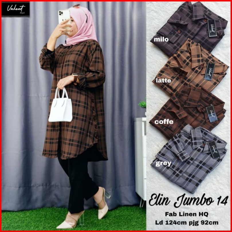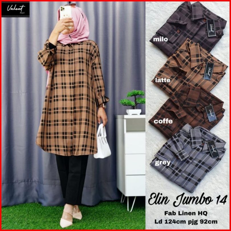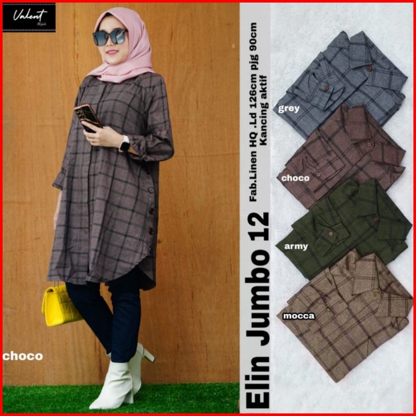 Elin Jumbo By Valent Tunik Jumbo Tunic Jumbo Tunik Flanel Tunik Tartan Tunik Jumbo Tunik Wanita Muslim Tunik Remaja Ibu