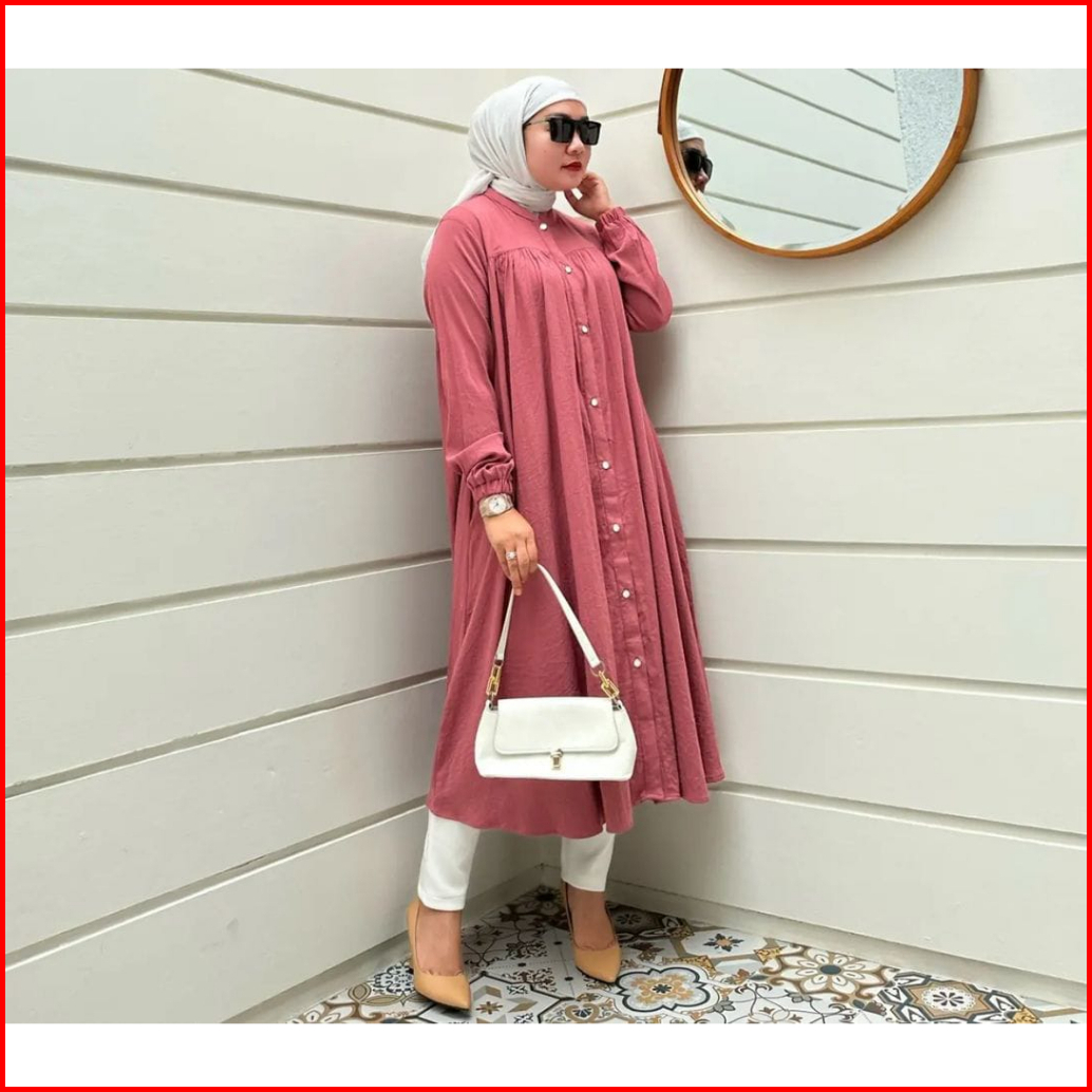 Tunik Muslim Wanita Terbaru Fiya Long Tunik Tunik Polos Bahan Katun Polo Linen Tunik Jumbo Midi Dress Fashion Wanita Baj