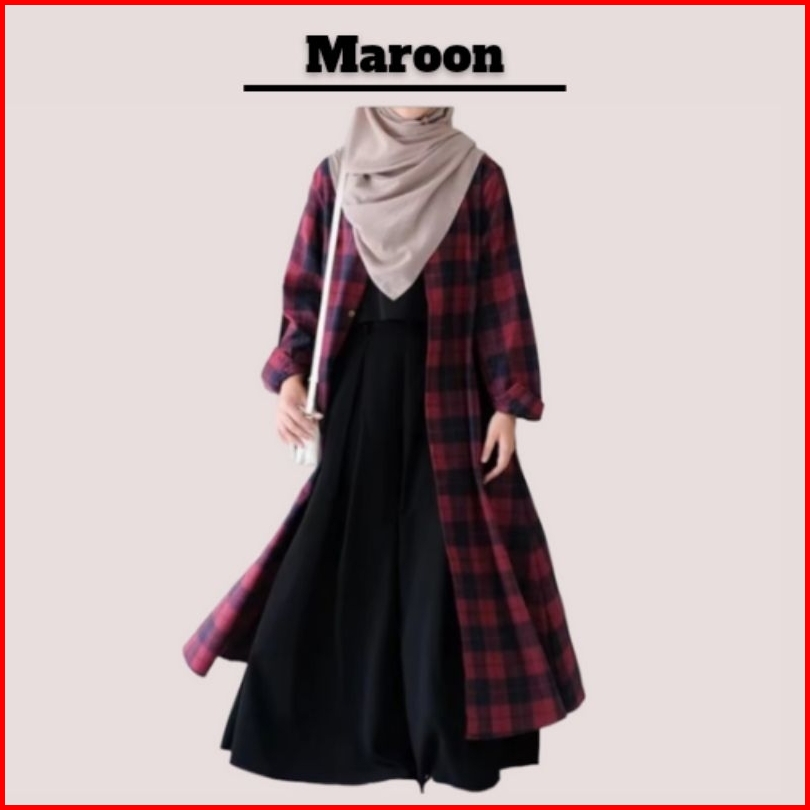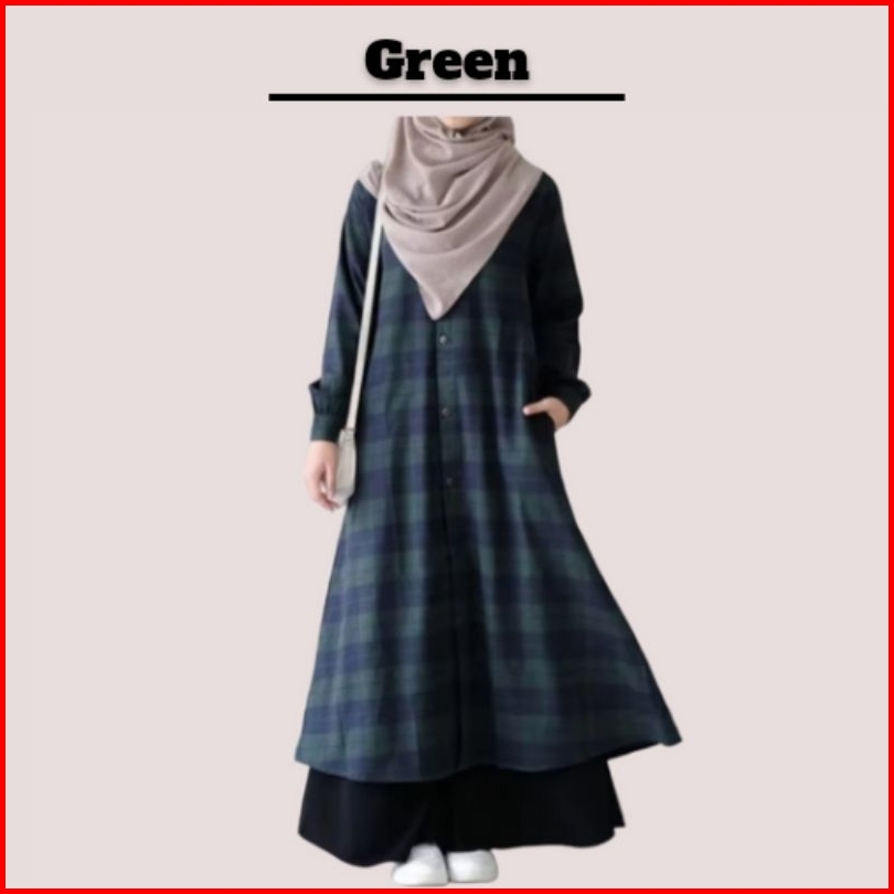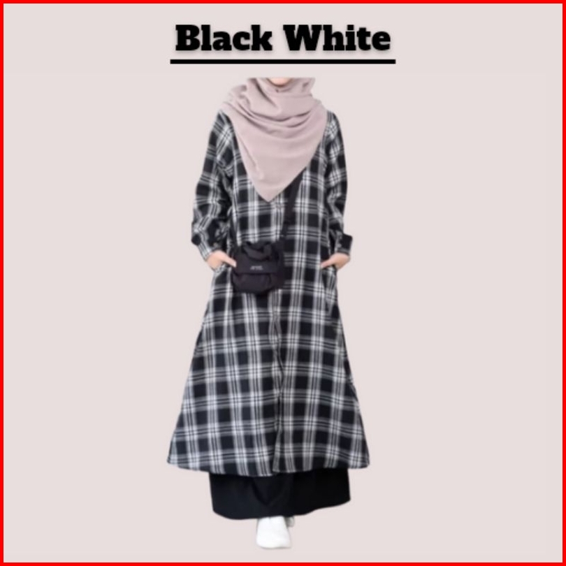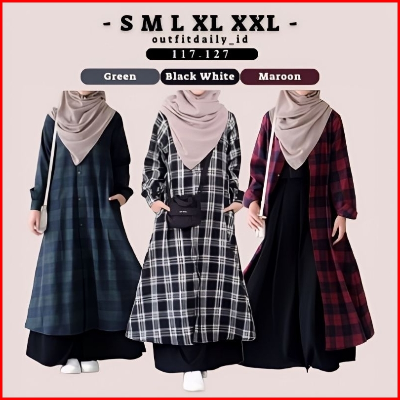 Khayla Long Tunik S M L Xl Xxl Jumbo - Tunik Wanita Flanel Kotak Kotak Busui Jumbo