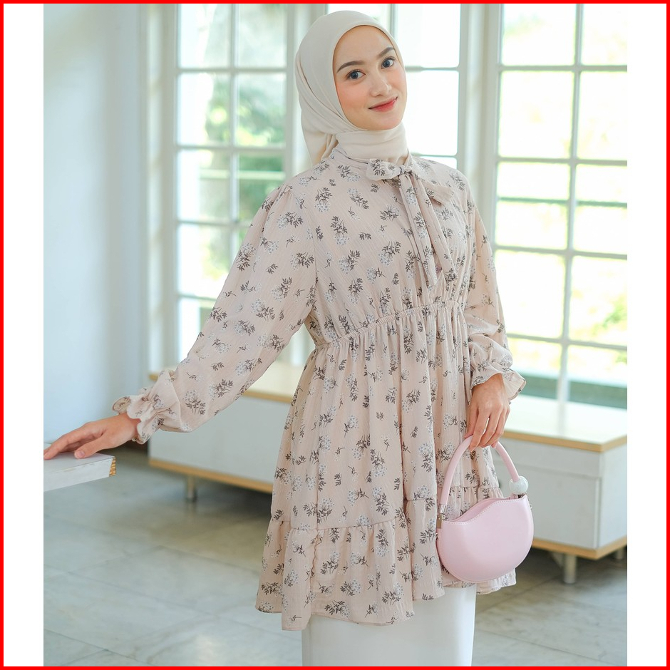Mayoutfit Marianna Tunic Tunik Kerah Pita Pinggang Karet Motif Floral
