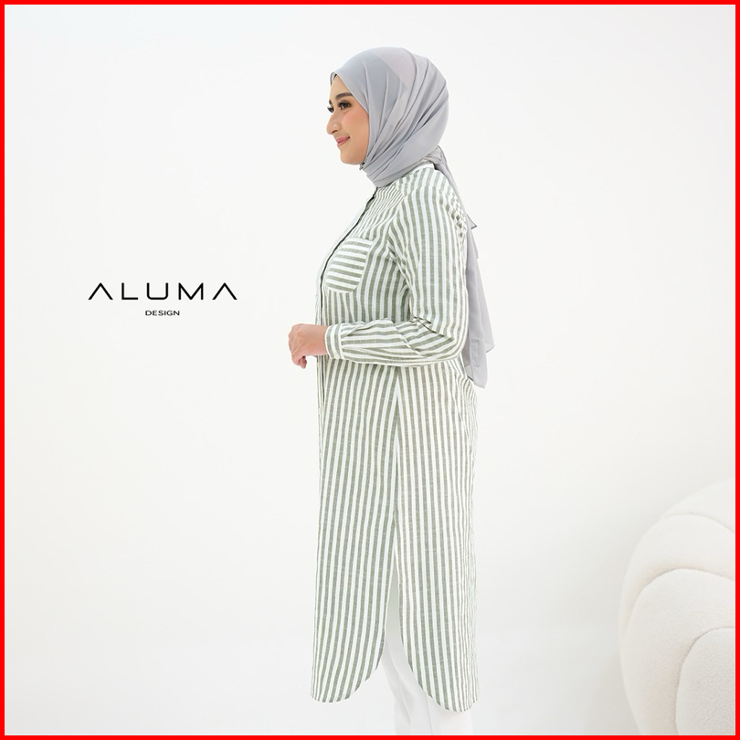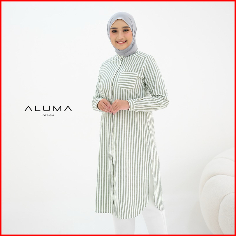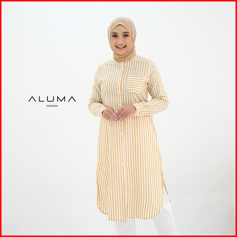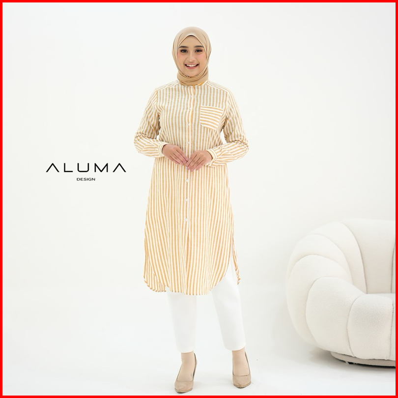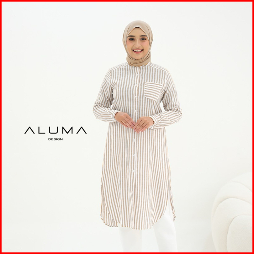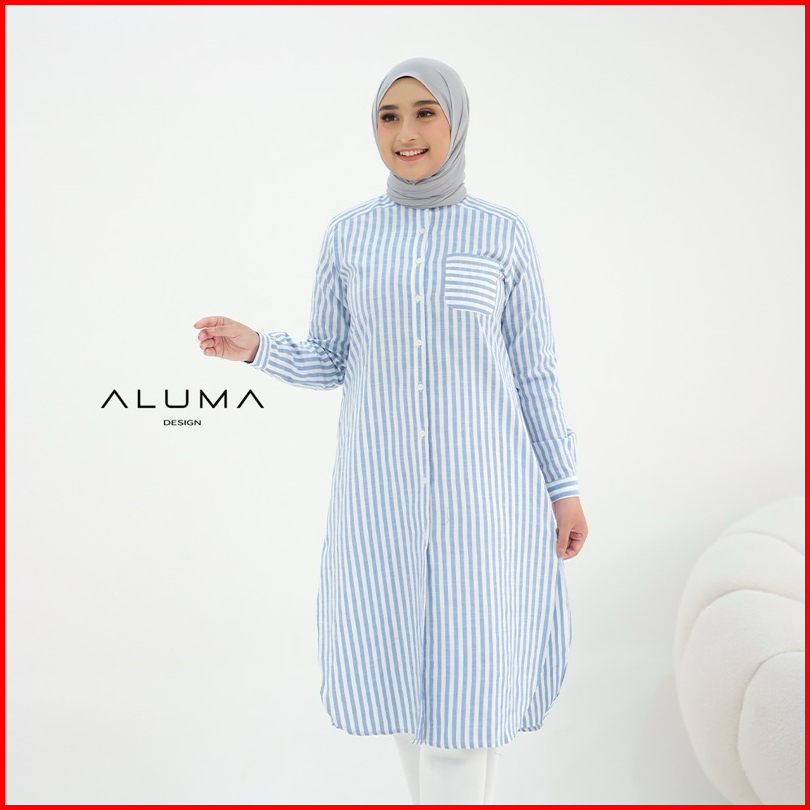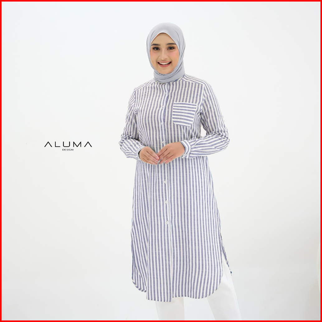 Aluma Tunik Salur Katun Import Tunik Wanita Terbaru