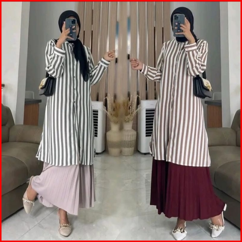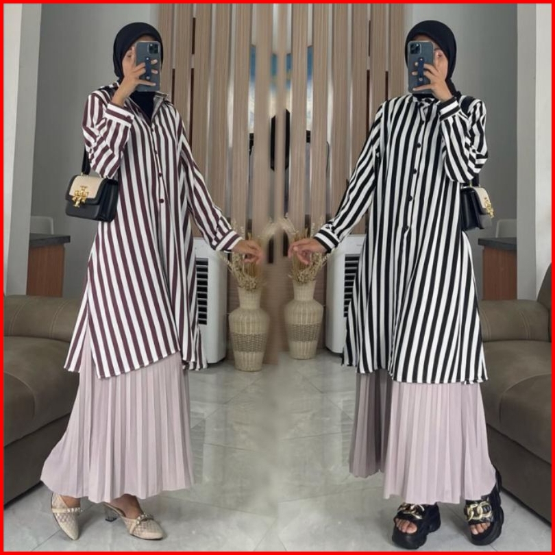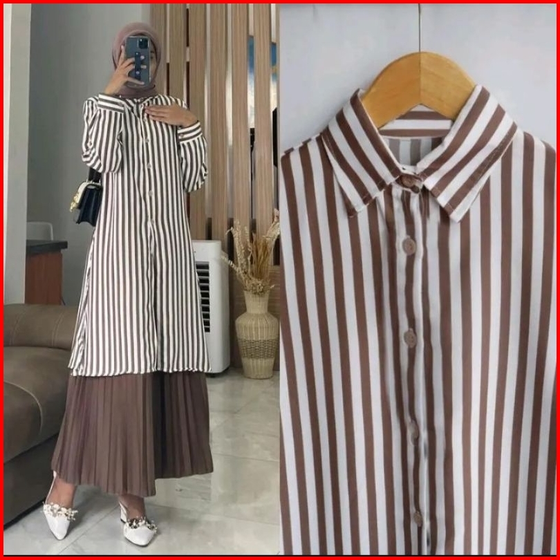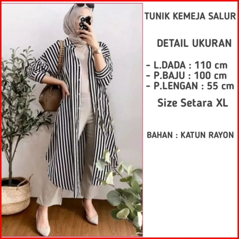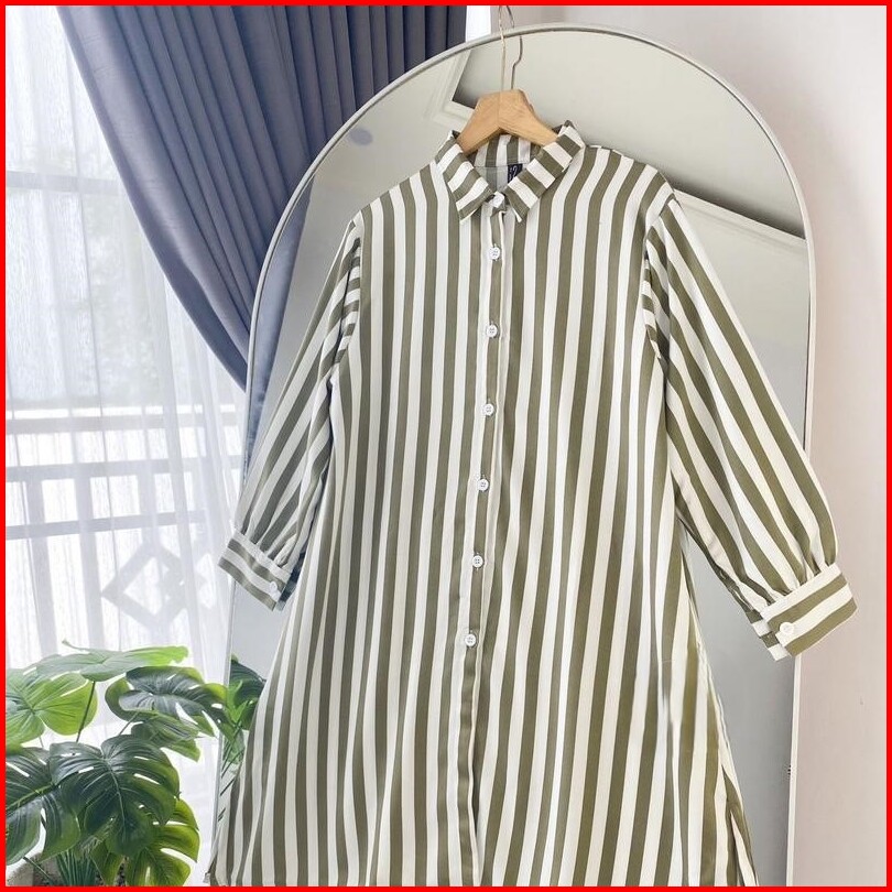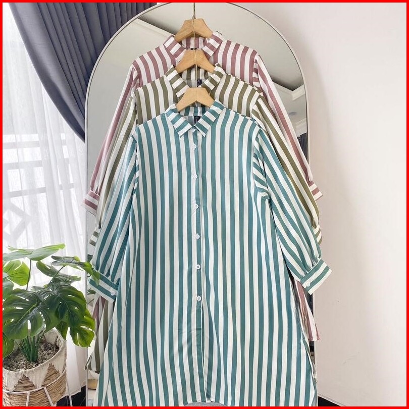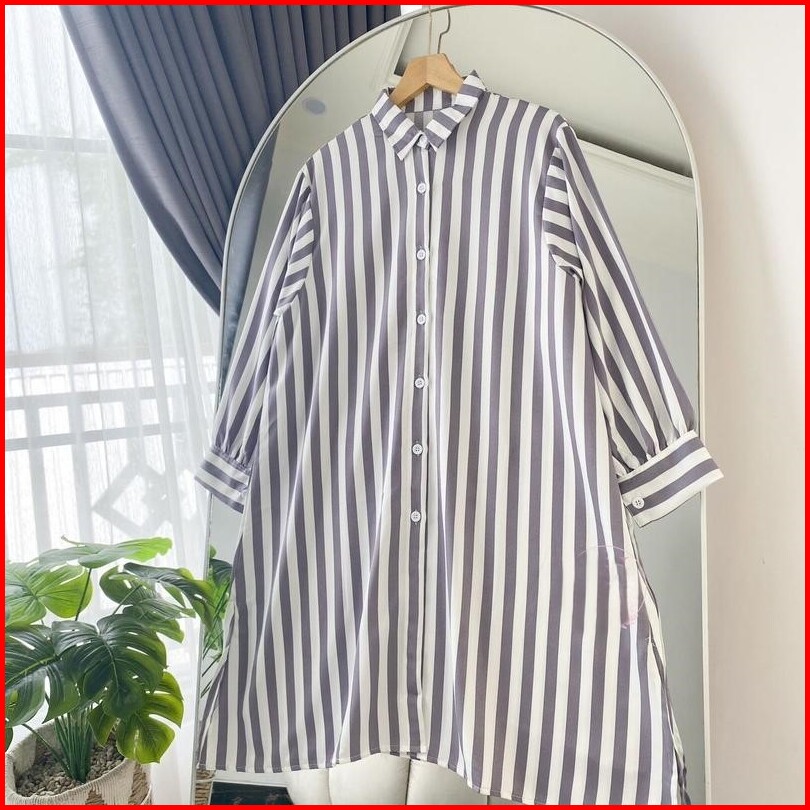 Tunik Kemeja Salur Rayon Stripy Jumbo Terlaris Ld 110 Pb100 By Azka Collection