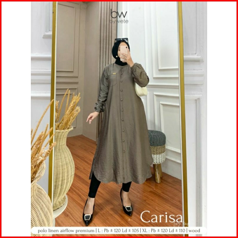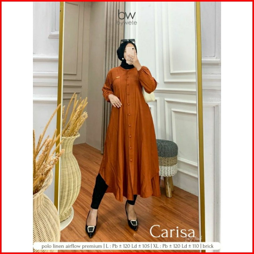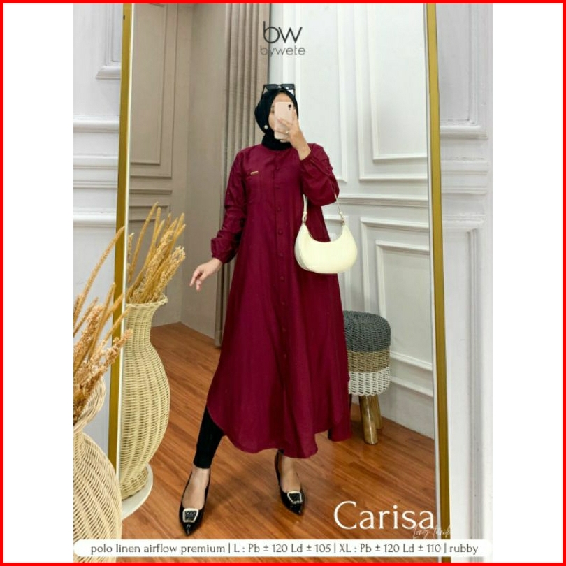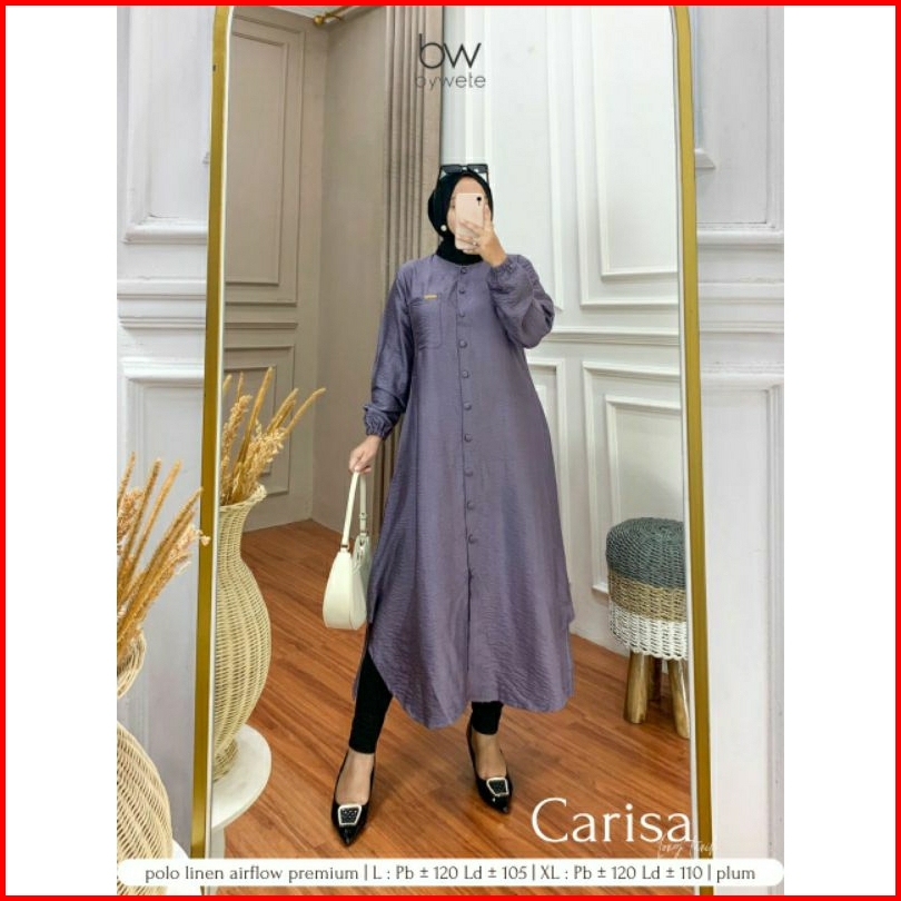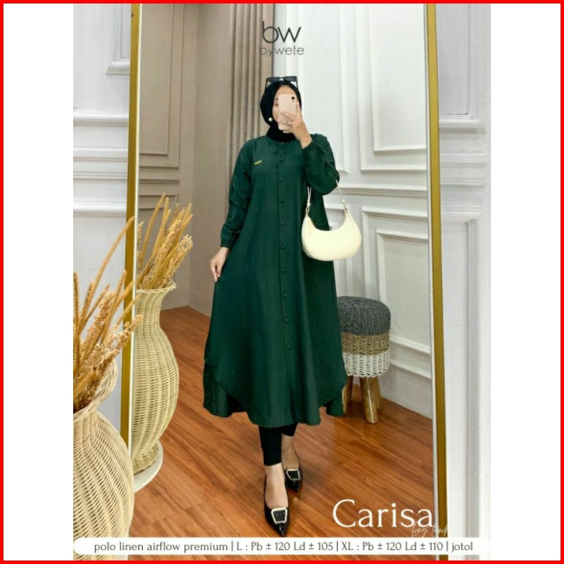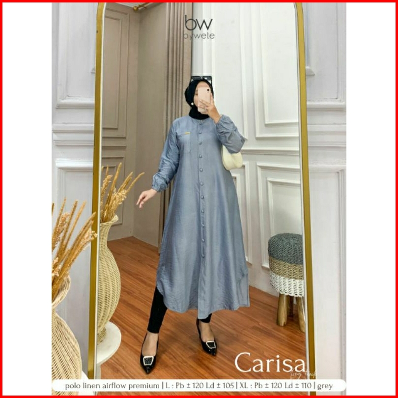 Tunik Premium Carisa Long Tunik Bahan Polo Linen Airflow Premium