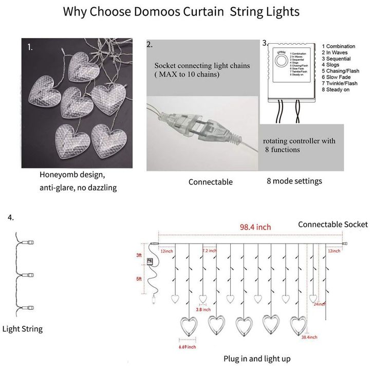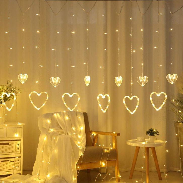 Love Curtain LED Light Lampu Tirai Hati Dekorasi Hias Pesta Valentine Cinta Heart