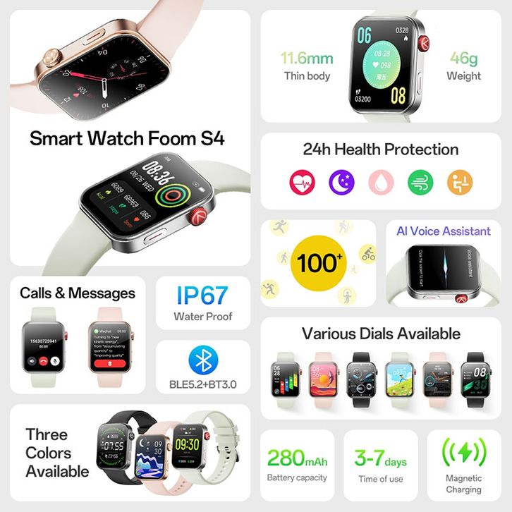 Aolon FOOM S4 Jam Tangan Smartwatch Metal Case Health Monitoring Running Pace Sports 1.91" HD Screen Wanita