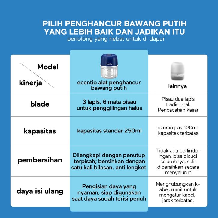ET.Mini Chopper Kecil Blender Portable 6 Bilah Pisau Bumbu Stainless 250ml USB Type C