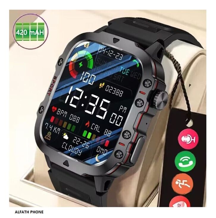 Jam Tangan Pintar Olahraga Tahan Air Panggilan Bluetooth Pria 420mAh Pemantauan Kesehatan IP68