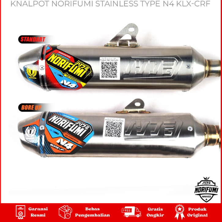 knalpot norifumi N4 stainless standar bore up motor klx 150 bf dtracker dt new crf 150 L WR 155 Original gratis ongkir