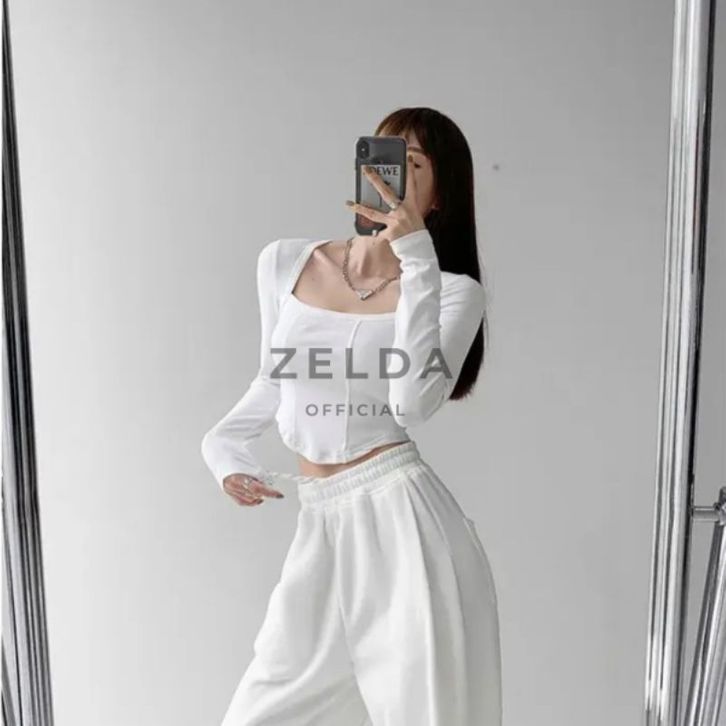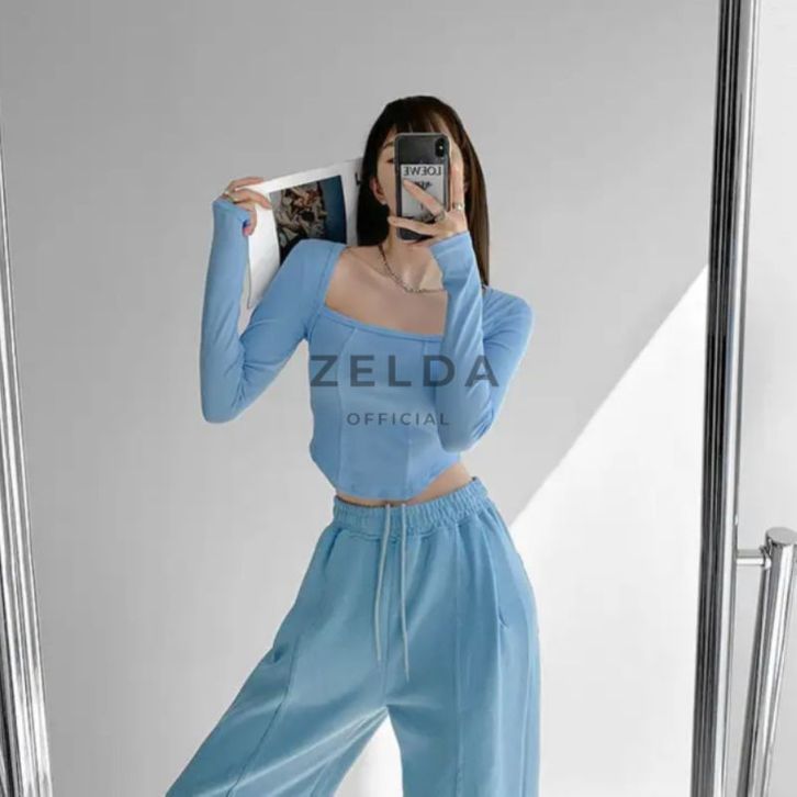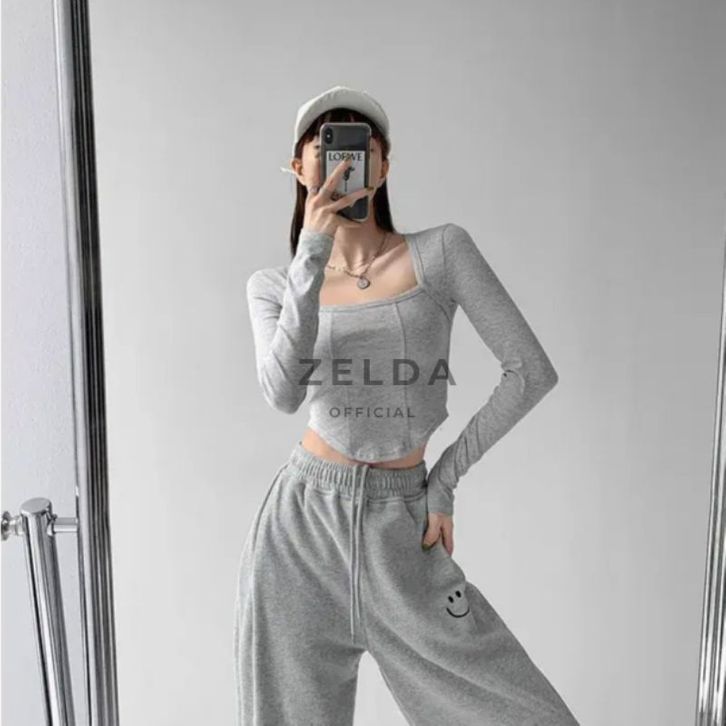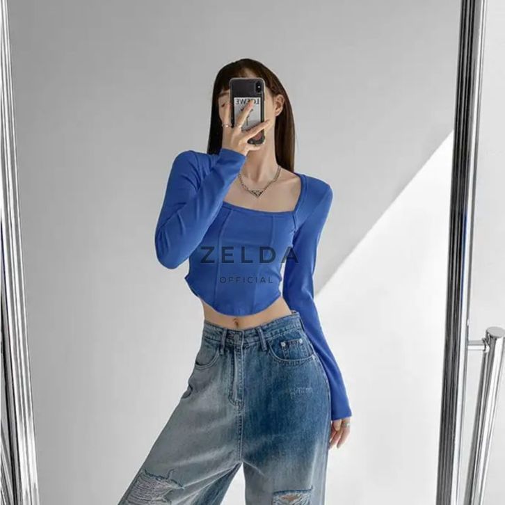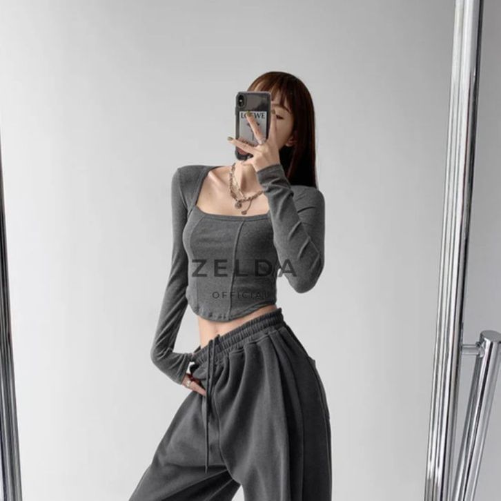 Crop Top Wanita Up Korean Style Lengan Panjang Jumbo Atasan Rajut Kekinian Leher Kotak Long Sleeve CTLS 010 GRATIS ONGKI