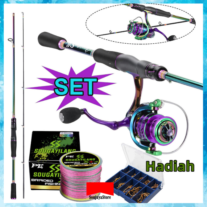 Joran Pancing Full Set Sougayilang Power Handle Reel Pancing Joran Spinning Set Carbon Fiber Murah Lengkap Shimano/Daido