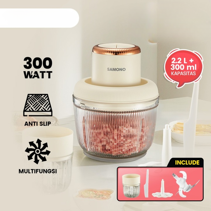 Chopper 2 in 1 Kapasitas 2,2L dan 300ml Multifungsi 300 Watt Pengggiling Daging Penghalus Makanan SW-CD300