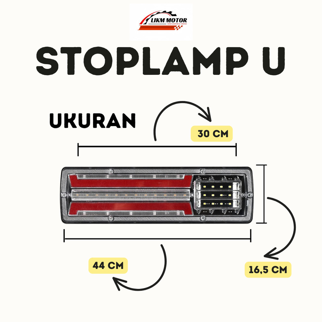 Stoplamp Pick Up 12 Volt Model U 30 CM 1 Set Kiri dan Kanan Variasi Anti Air Lampu Belakang Universal
