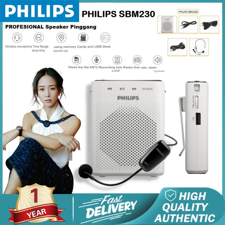 SPEAKER PHILIPS SBM230 WIRELESS MICROPHONE PORTABLE SPEAKER MIC ORI SPIKER PHILIPS FULL BASS