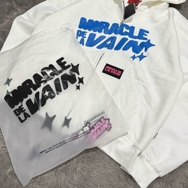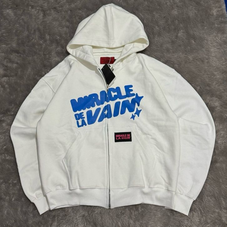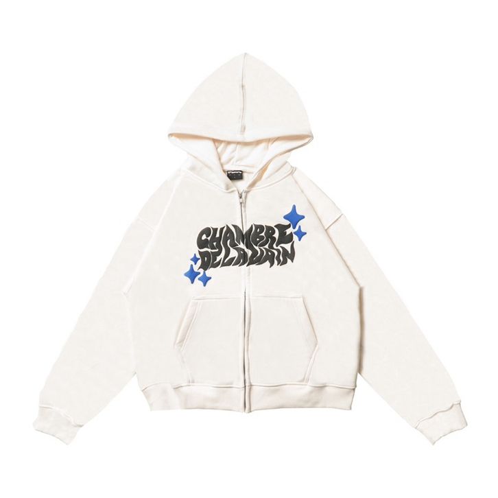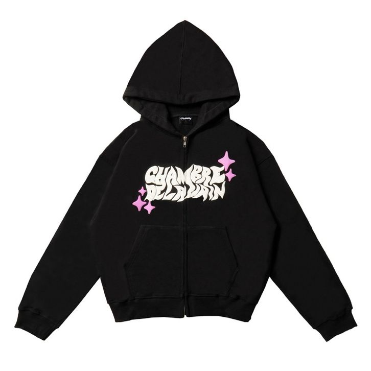 Hoodie Boxy Ahha BOXY ZIP HOODIE CHAMBRE FOREVER BLACK AND WHITE