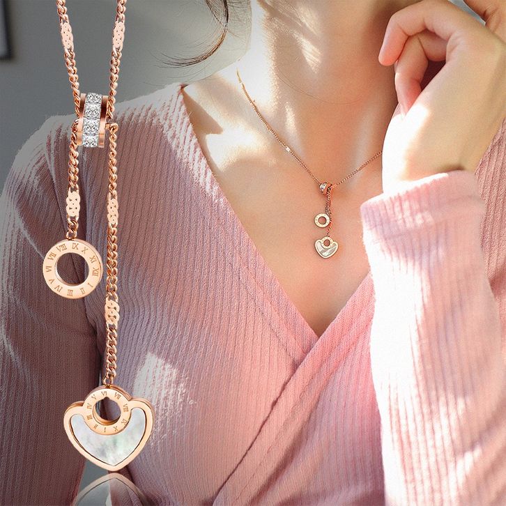OLEVS Kalung Wanita Anti Karat Titanium Aesthetic Bentuk Gaya Wanita Perhiasan Cardiotip Pink perak Necklace hadiah ulan