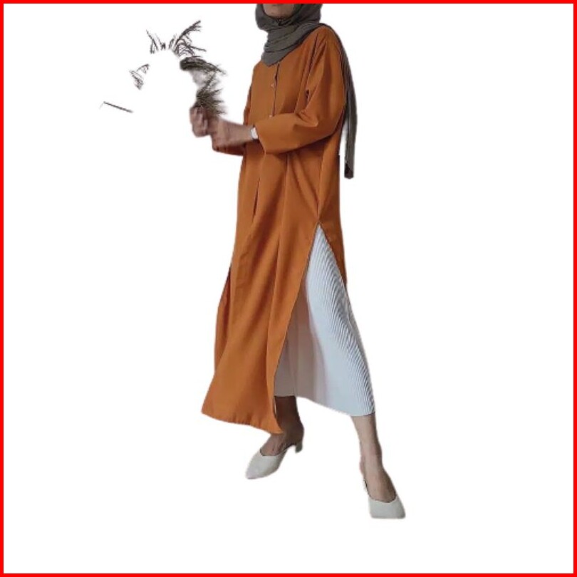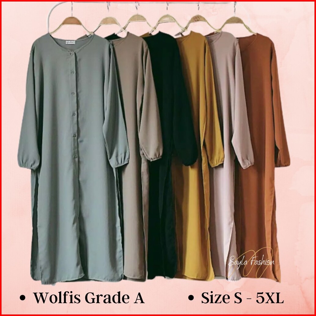 Atasan Fashion Muslim Long Tunik Wanita Wolfis Polos Premium Jumbo Kekinian Ld 120 130