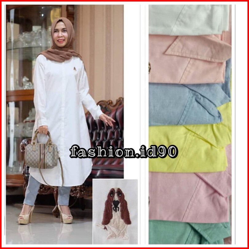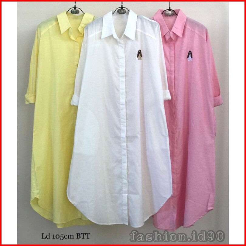Fashion.id90 Long Tunik Hp Panjang Wanita Bahan Katun Oxford Putih 929 L Xl Xxl Xxxl Tunik Jumbo 929hp