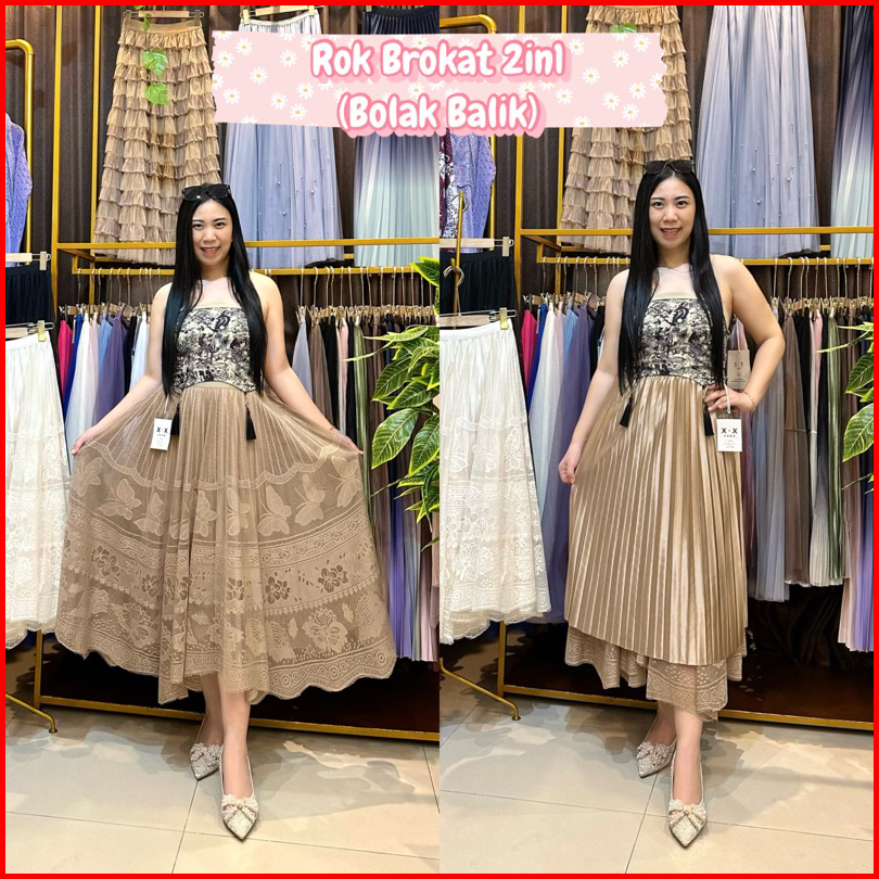 Fw R725 Rok Brokat Bolak Balik Plisket 7 9 Import Premium Rok Brokat 2 In 1