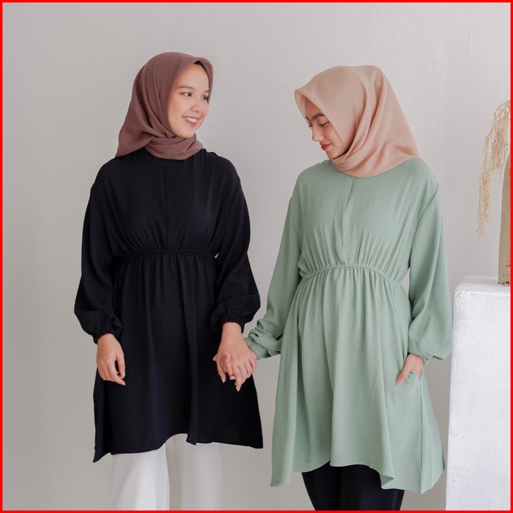 Nice Label - Aqila Tunik - Blouse Tunik Wanita Busui Friendly Dengan Pinggang Karet Dan Sreting Dada