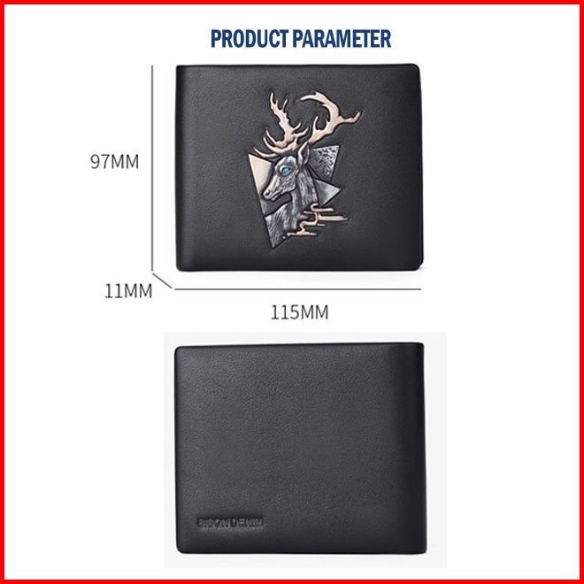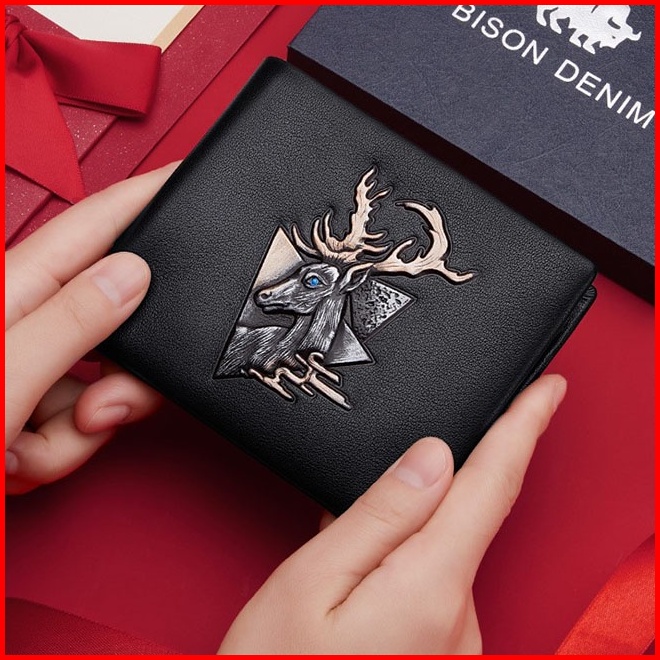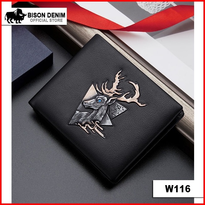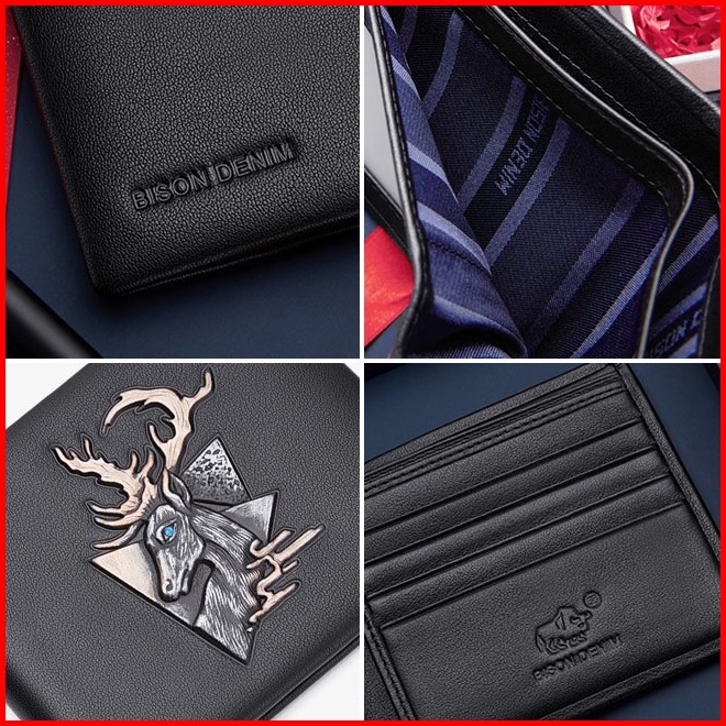 Dompet Pria Kulit Sapi Asli Deer Emboss Logo Original Bison Denim Bifold Wallet W116