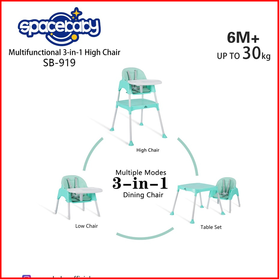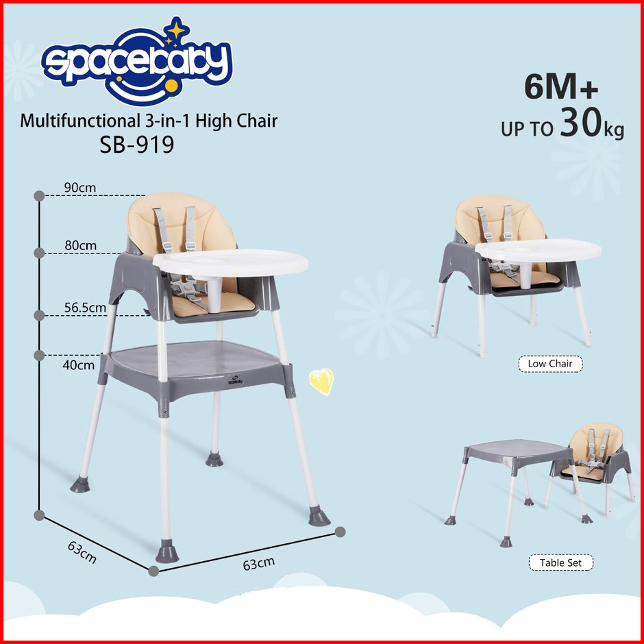 Termurah Baby Chair Spacebaby 919 3 In 1 Kursi Makan Bayi Balita Tempat Makan Anak Bayi Balita Space Baby High Chair 3in