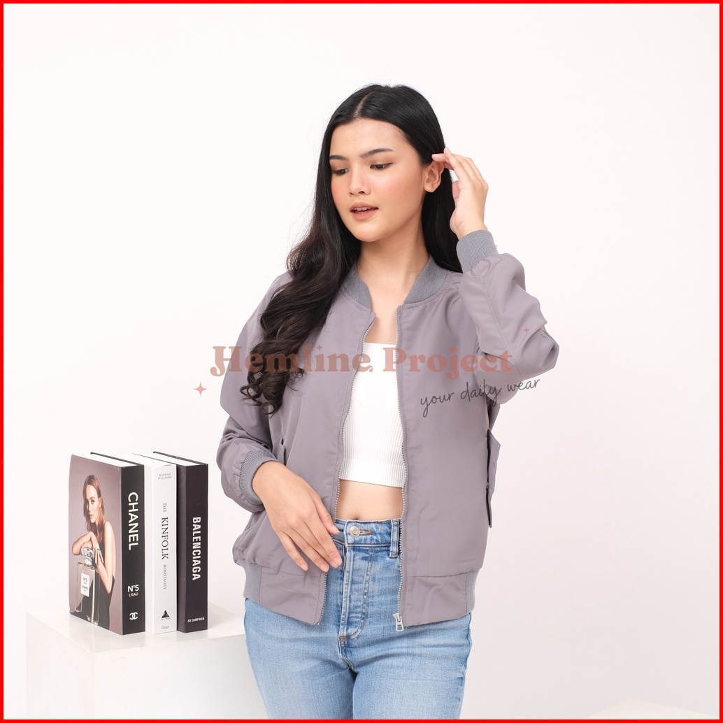 Gania Bomber Jaket Grey - Jaket Parasut Wanita