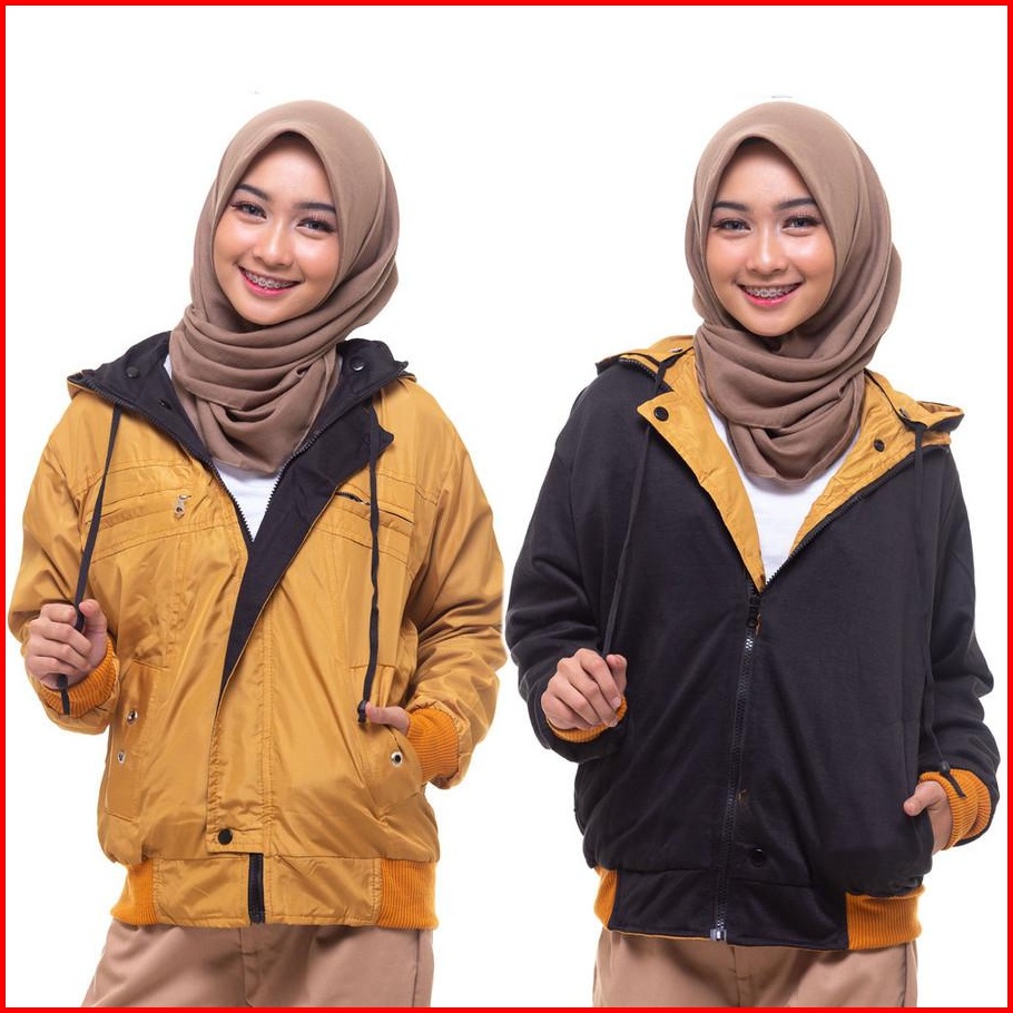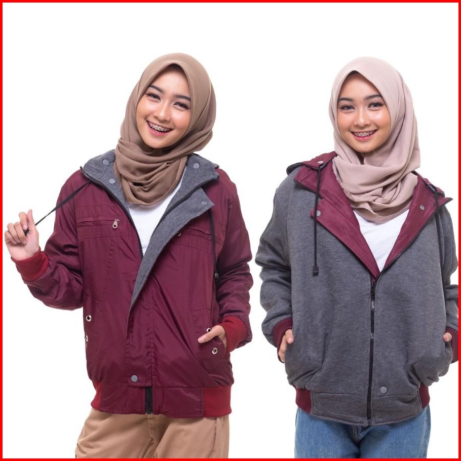Heylook - Jaket 2 In 1 Jaket Wanita Jaket Parasut Anna Jaket Bolak Balik Wanita Hodie Bisa Dilepas