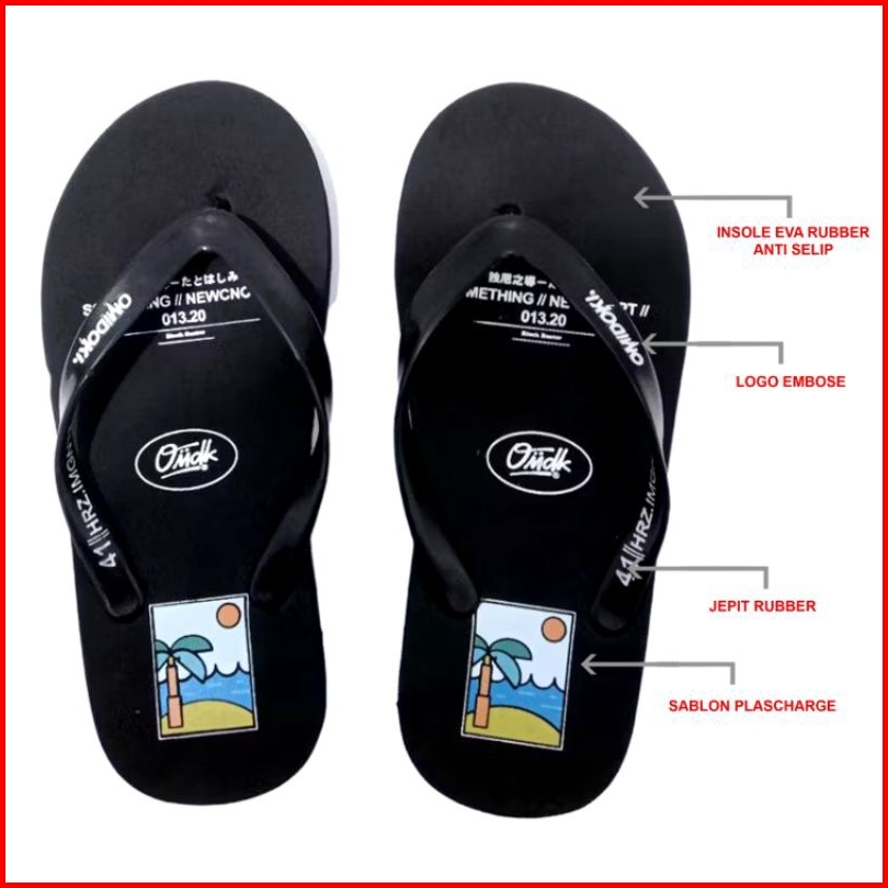 Omidoki Sandal Distro Pria Wanita Sendal Jepit Pria Original Hitam Flexa