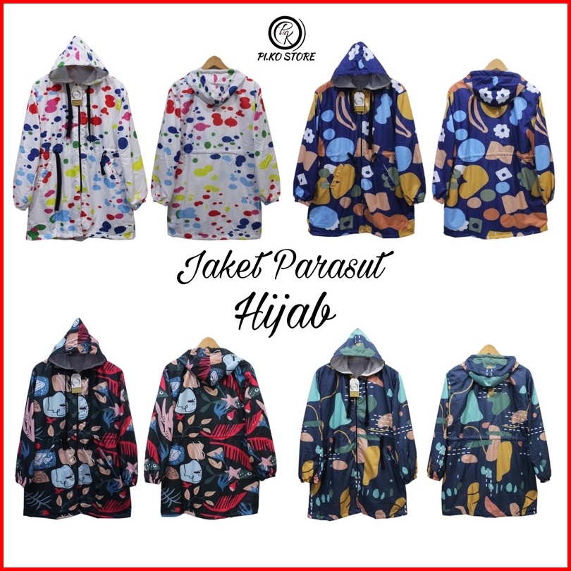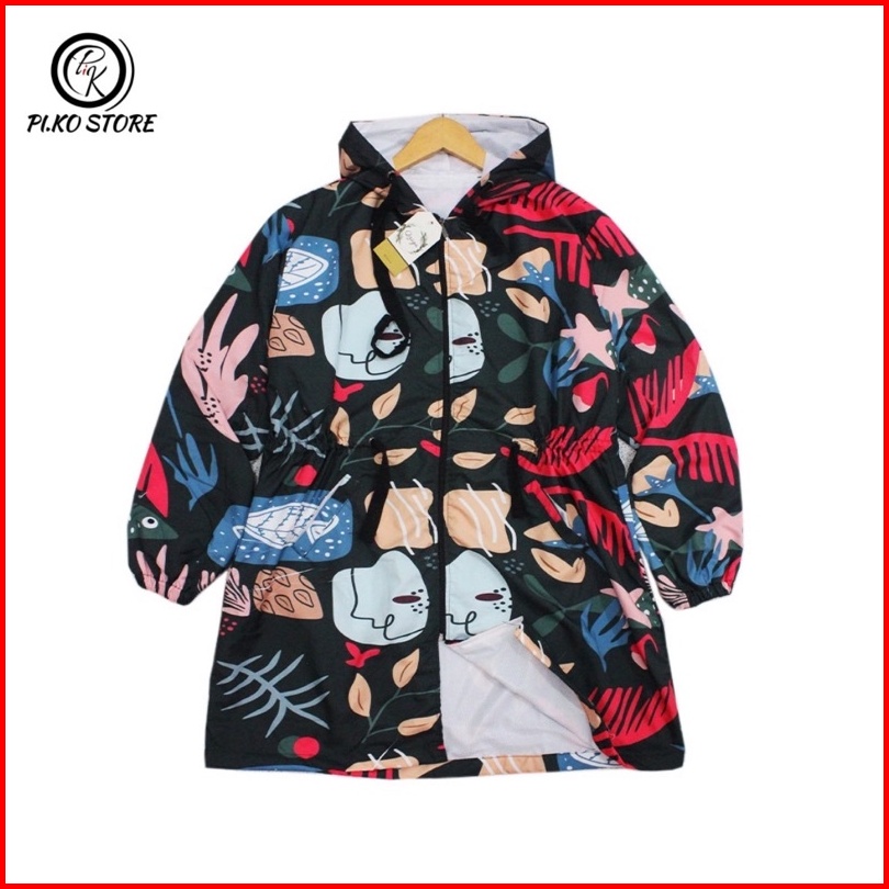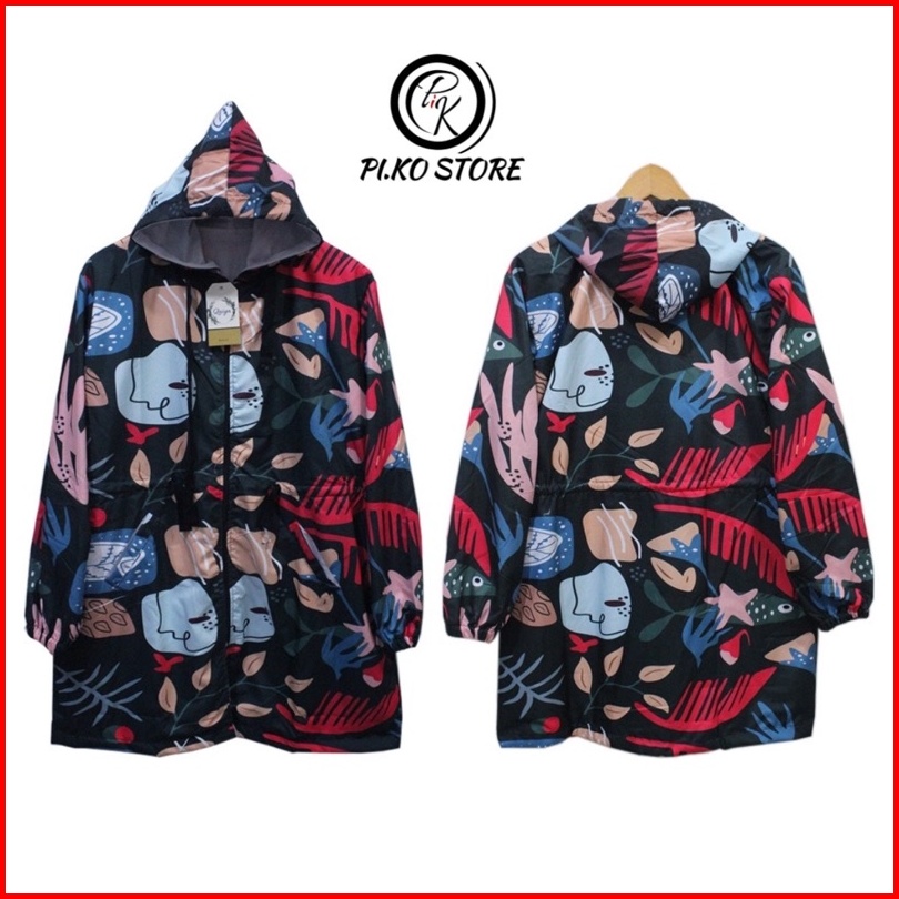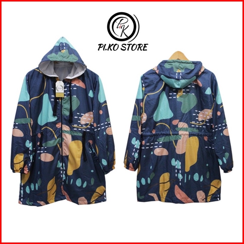 Jaket Tunik Parasut Wanita Jaket Parasut Printing Long Jaket Parasut
