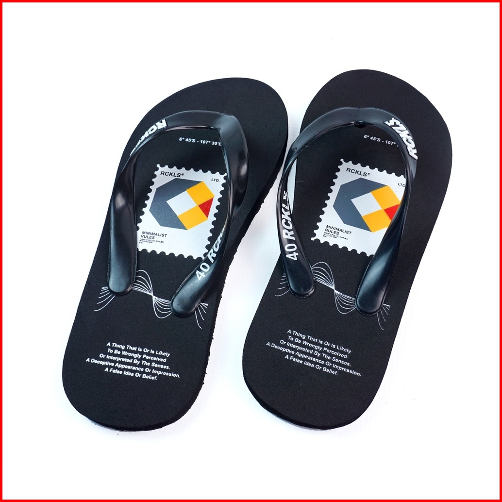 Rckls.- Sandal Spon Distro Sticker Black Sendal Jepit Distro