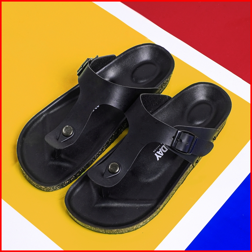 Asta Full Black - Sandal Jepit Pria Casual Kulit Distro Sendal Capit Kekinian Terbaru Laki Laki Cowok Kasual Fashion Han