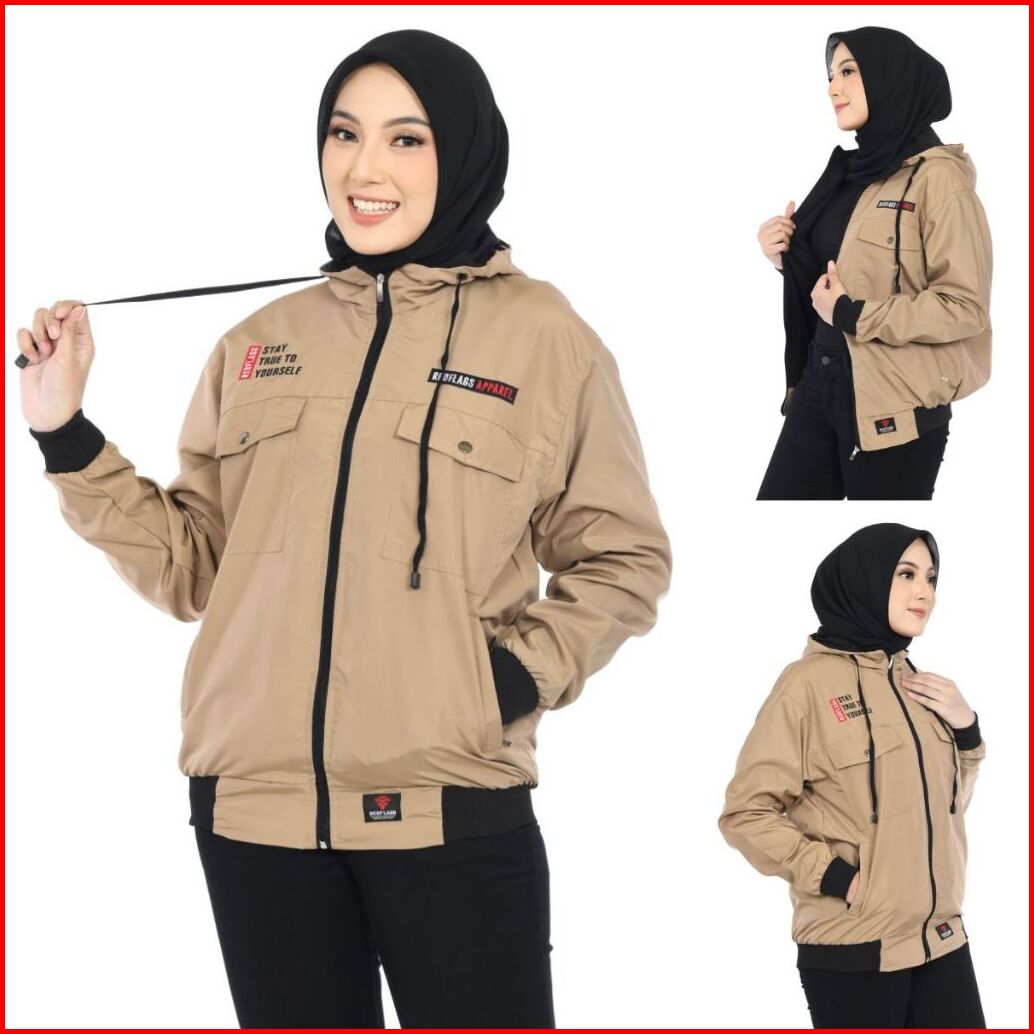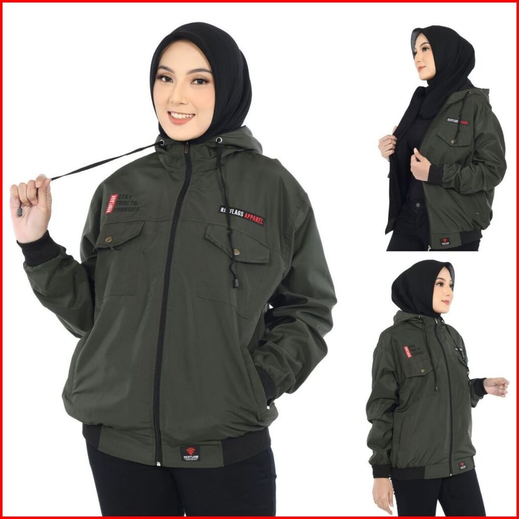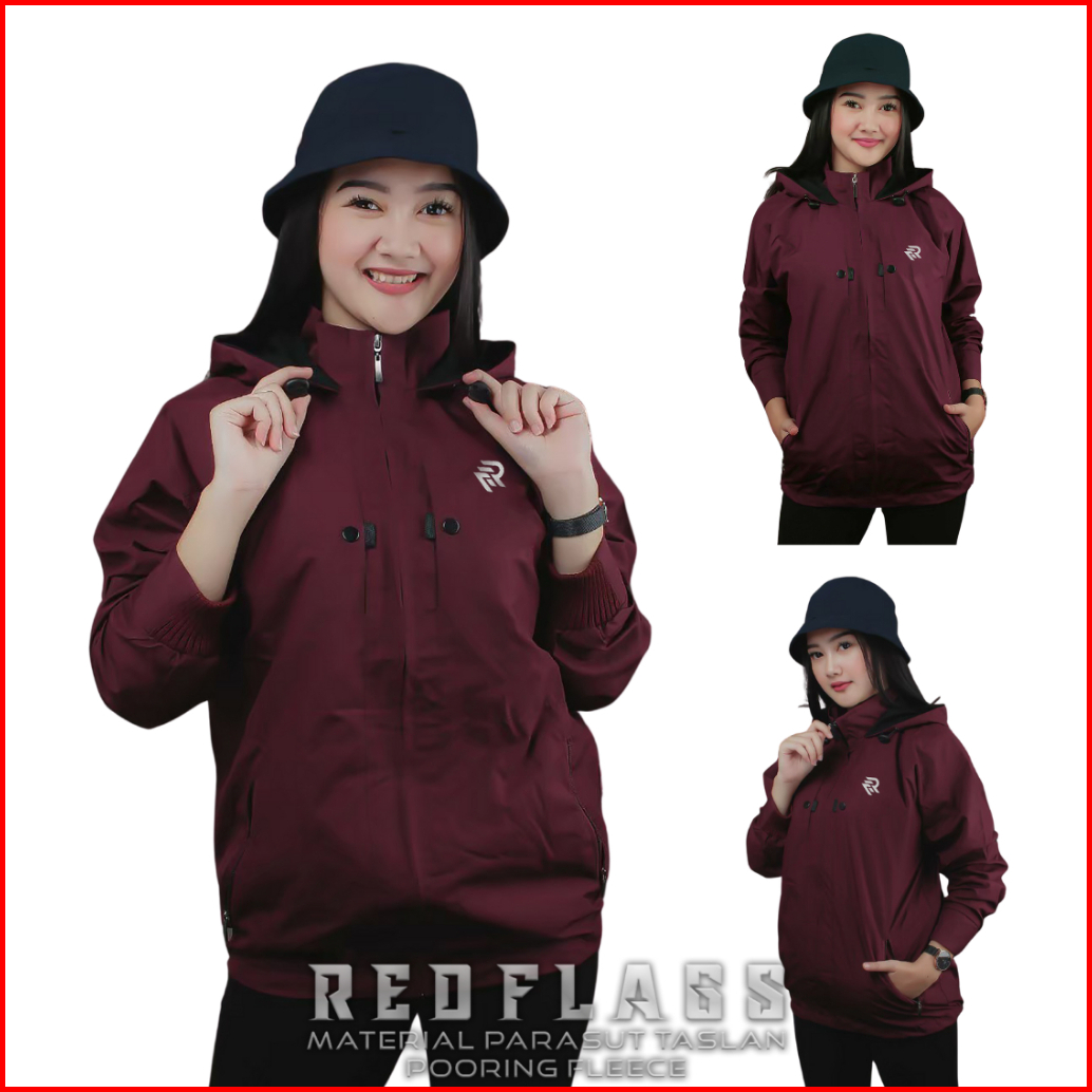 Jaket Parasut Wanita Waterproof Anti Air Original Red Flags Chest Jaket Cewek Blazer