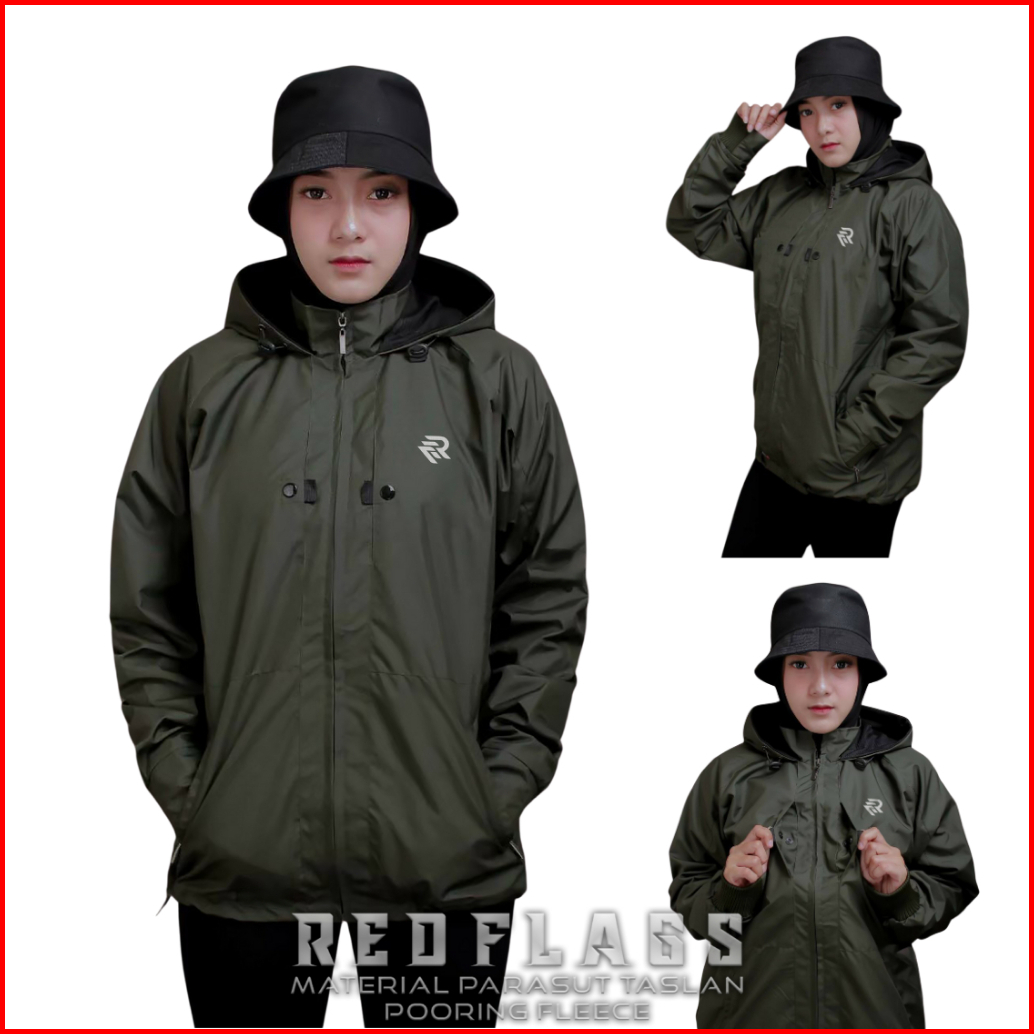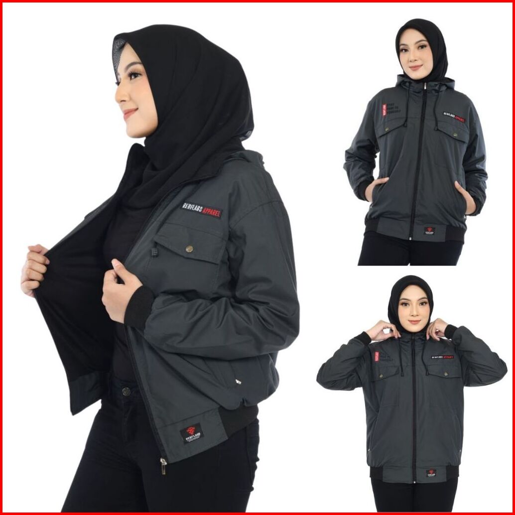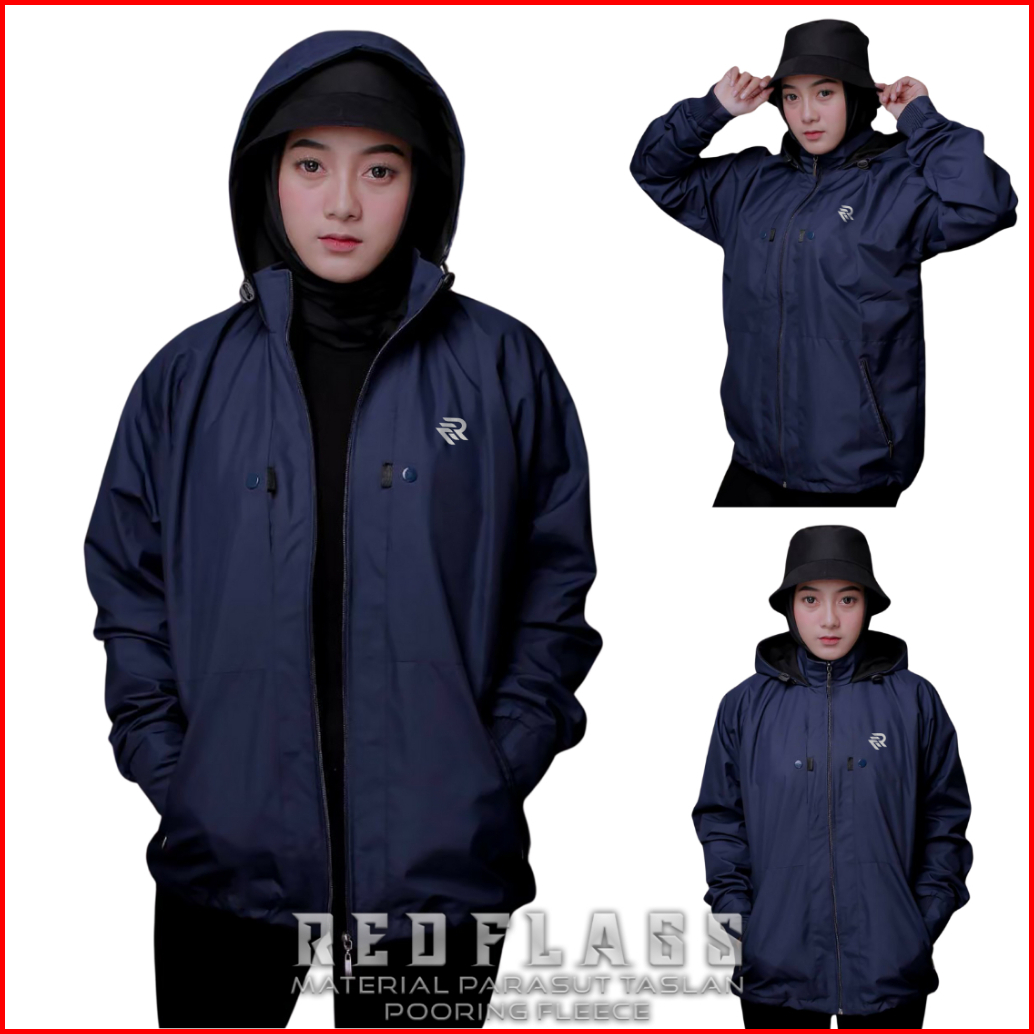 Jaket Parasut Wanita Waterproof Anti Air Original Red Flags Chest Jaket Cewek Blazer