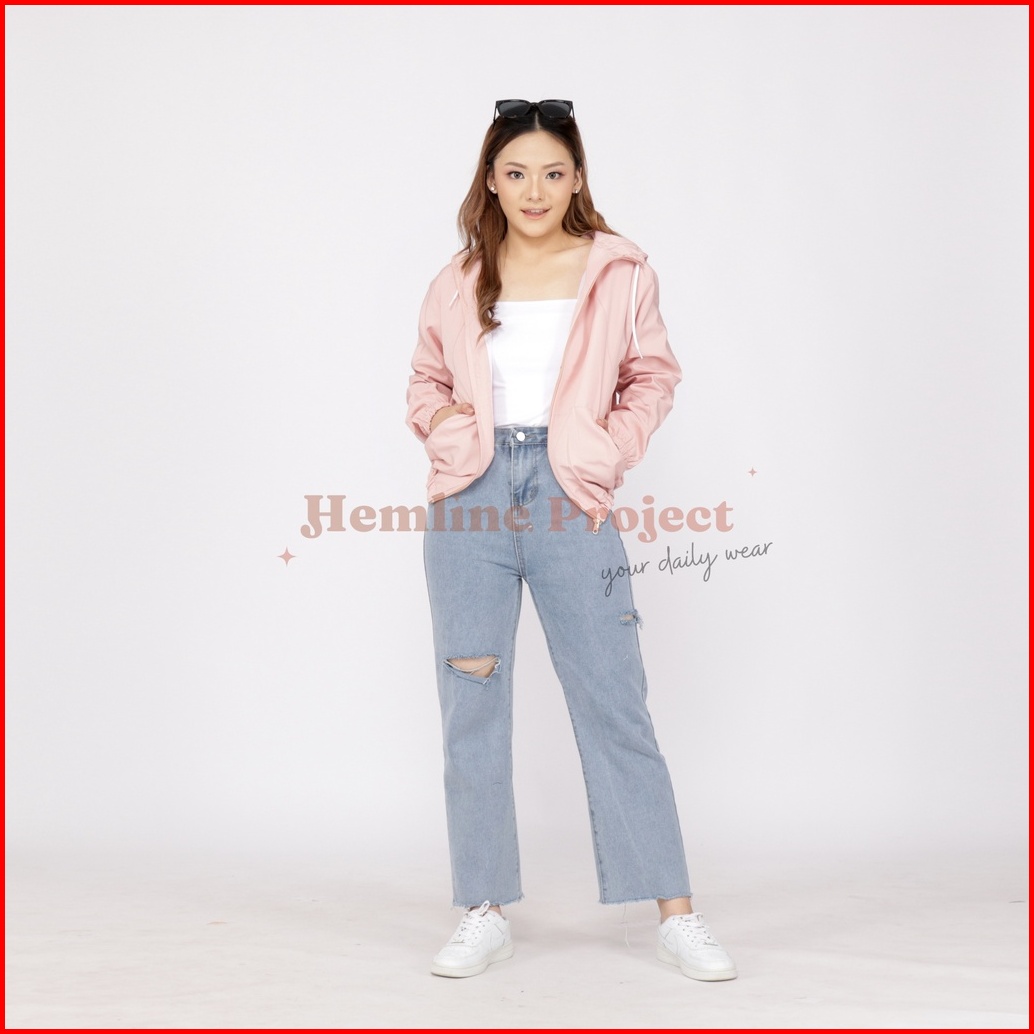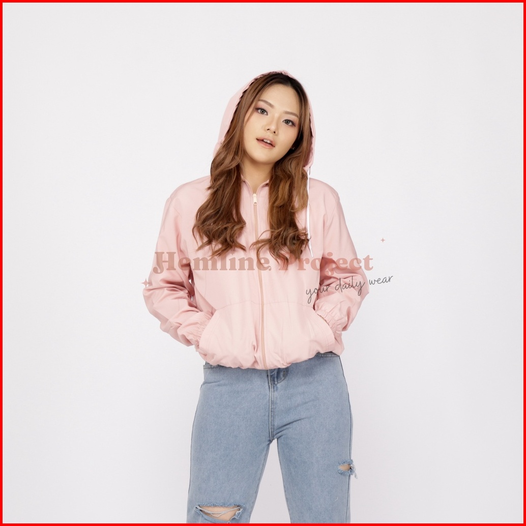 Aima Jaket Peach - Jaket Parasut Hoodie Wanita
