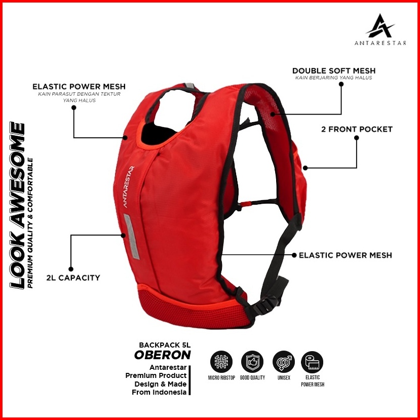 Antarestar X Sombong - Hydropack Vest Oberon Trail Running Tas Hiking Rompi Outdoor Pria Wanita Free Sombong 5 In 1 Face