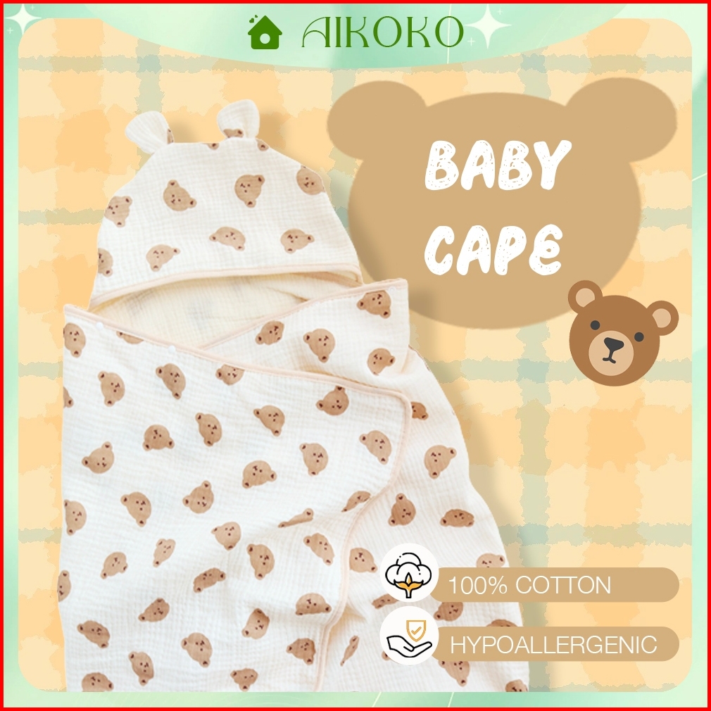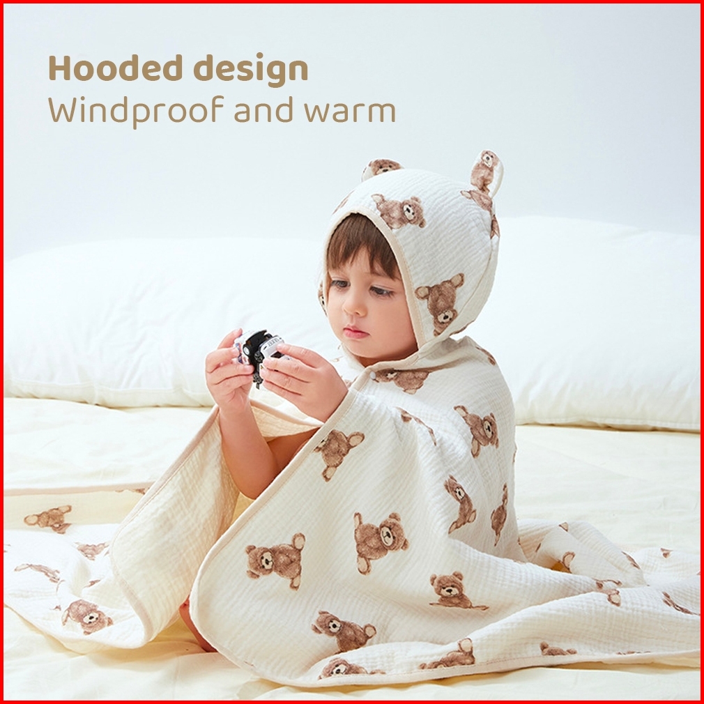 Selimut Baby Cotton Blanket Bayi Topi Hooded Lembut Halus Newborn Kintakun Karakter Premium Ponco Bayi Tahan Angin Dan H