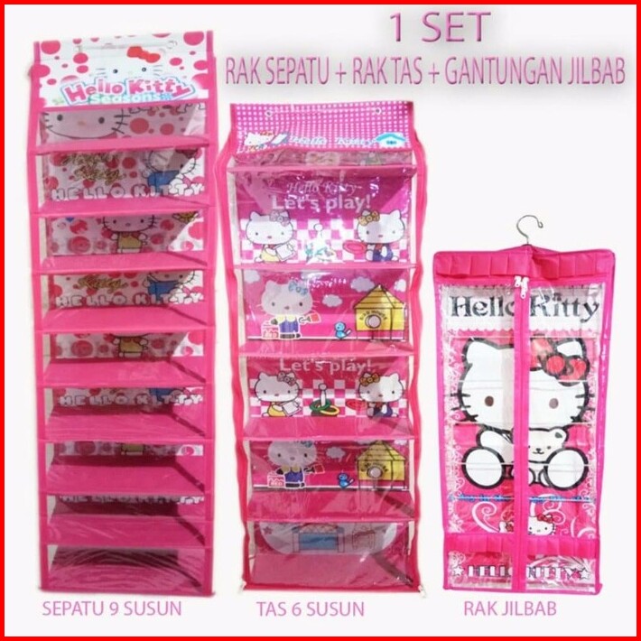 Rak Gantung Karakter Resleting Set 3in1 Rak Tas Sepatu Hijab Karakter