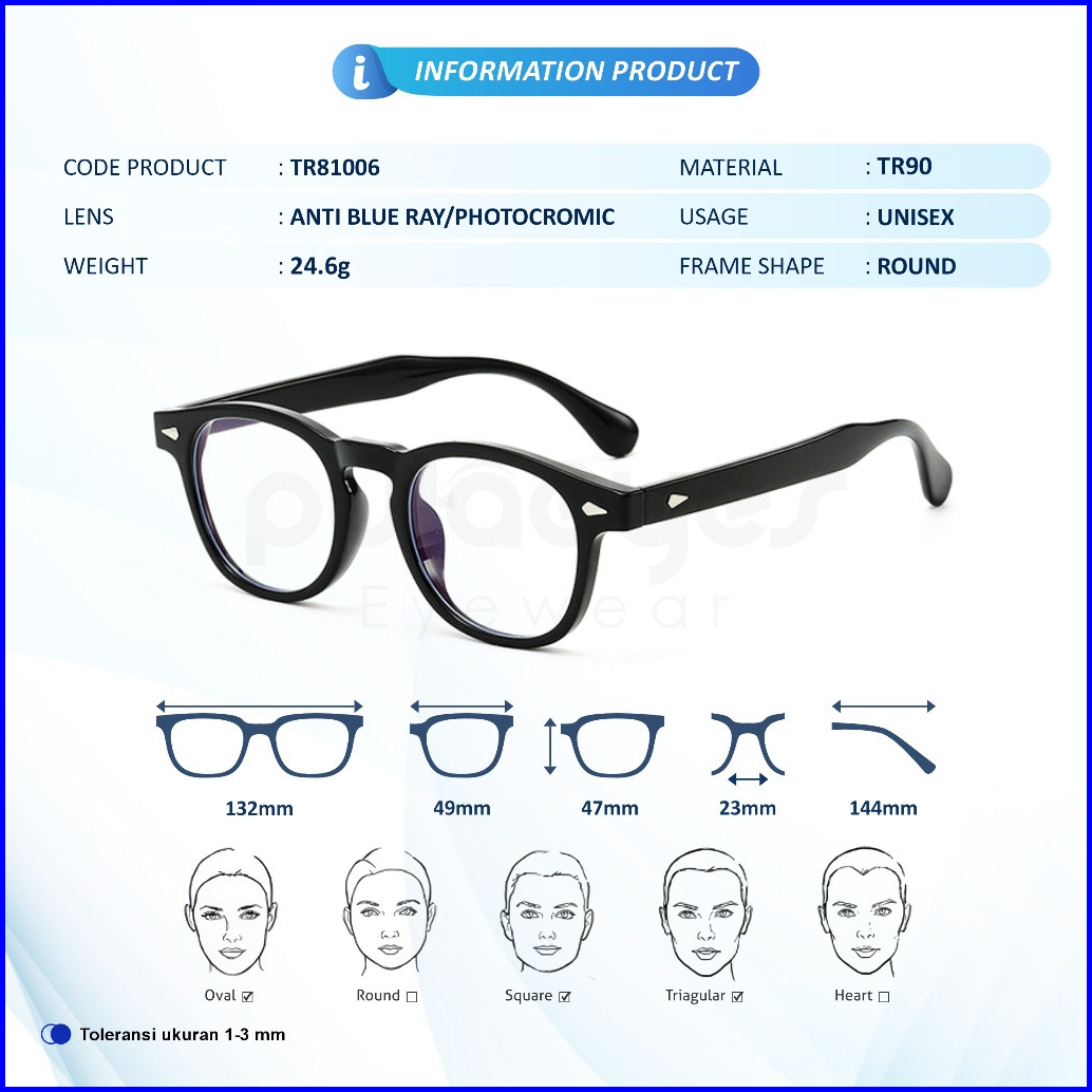 Pulaeyes Eyewear Kacamata Minus Antiradiasi Photocromic Bentuk Round Oval Kacamata Tr90 Kacamata Daily Wanita Pria Tr810