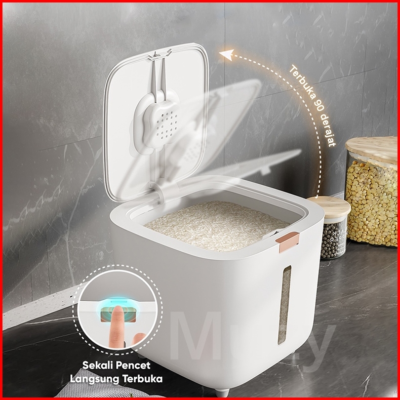 Muzy Tempat Penyimpanan Beras Anti Kutu Dan Serangga 11kg Rice Bucket Dispenser Beras Hsb793