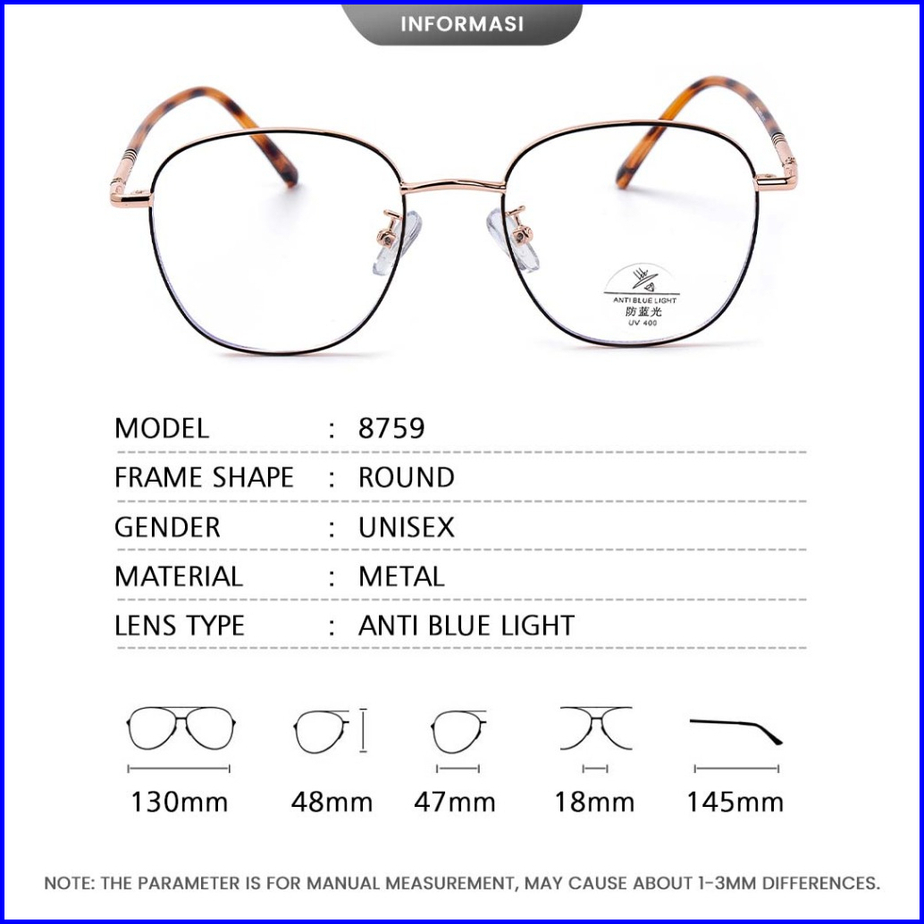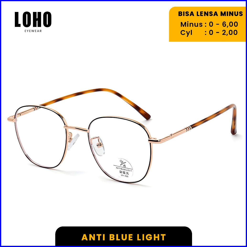 Loho Kacamata Minus Anti Radiasi Photocromic Blueray Frame Bulat Bahan Metal Ringan Kokoh Fashion Pria Wanita 8759