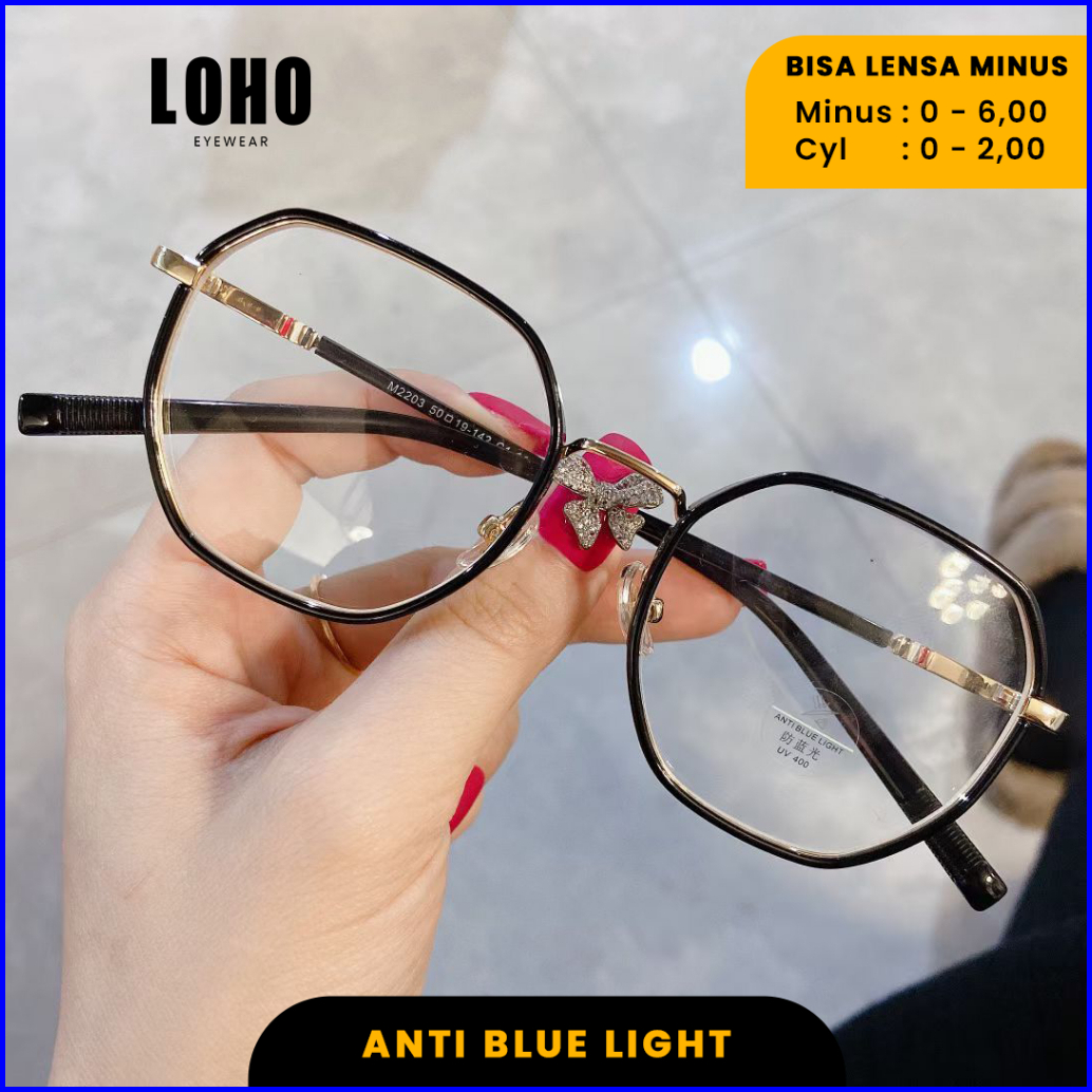 Loho Kacamata Anti Radiasi Photocromic Bluecromic Minus Anti Blueray Frame Geometric Fashion Pria Wania M2203